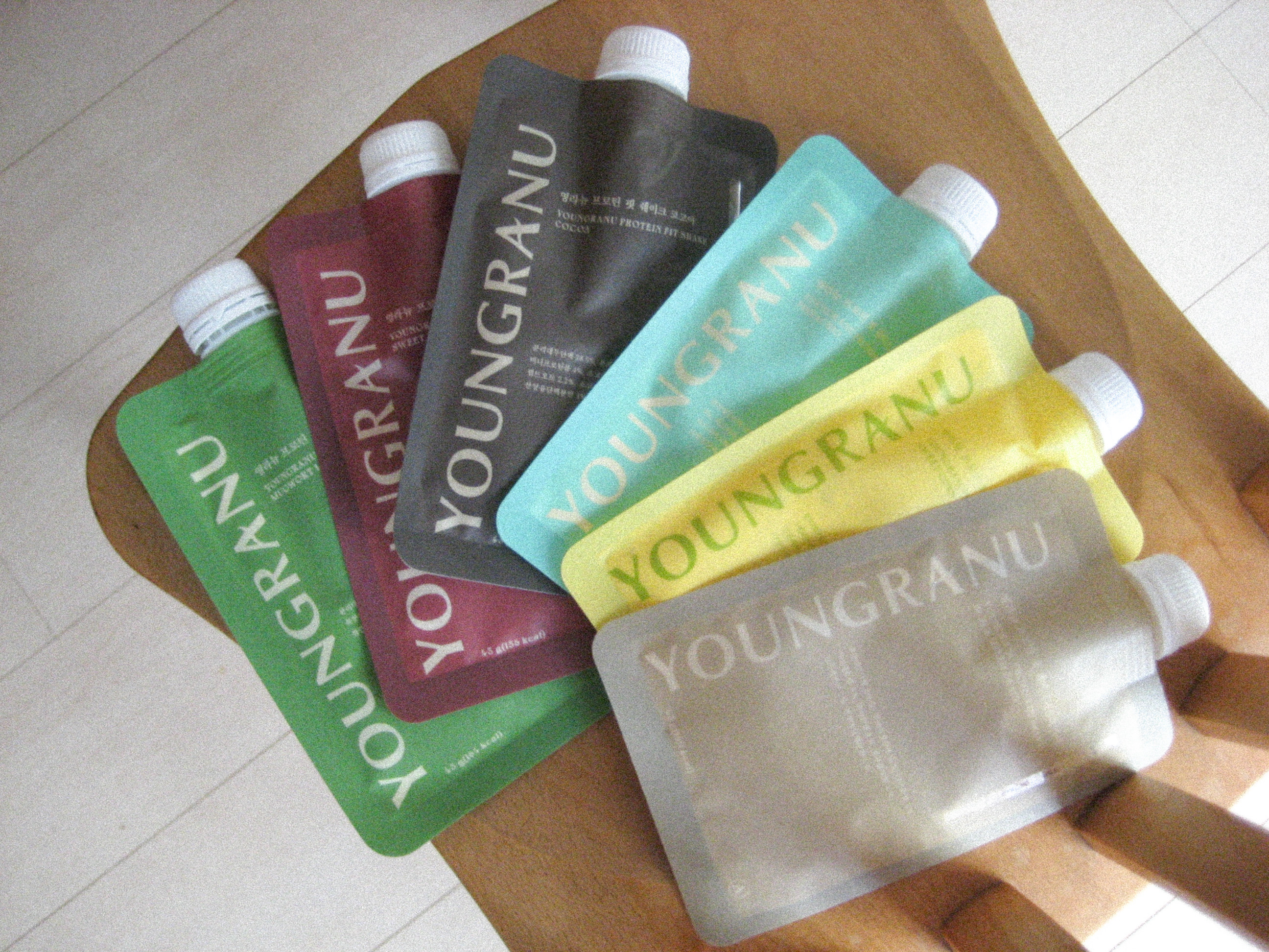 YOUNGRANUさまからいただきました。ヨンラニュープロテインフィットシェイク▶︎穀物黒ゴマ味🦭▶︎ココア味☕️▶︎スイートコーン味🌽▶︎ピスタチオ味🫛▶︎ヨモギラテ🌿▶︎あずきピンス🫘1包で1日の摂取量の目安の1/3、20g以上(20〜2...