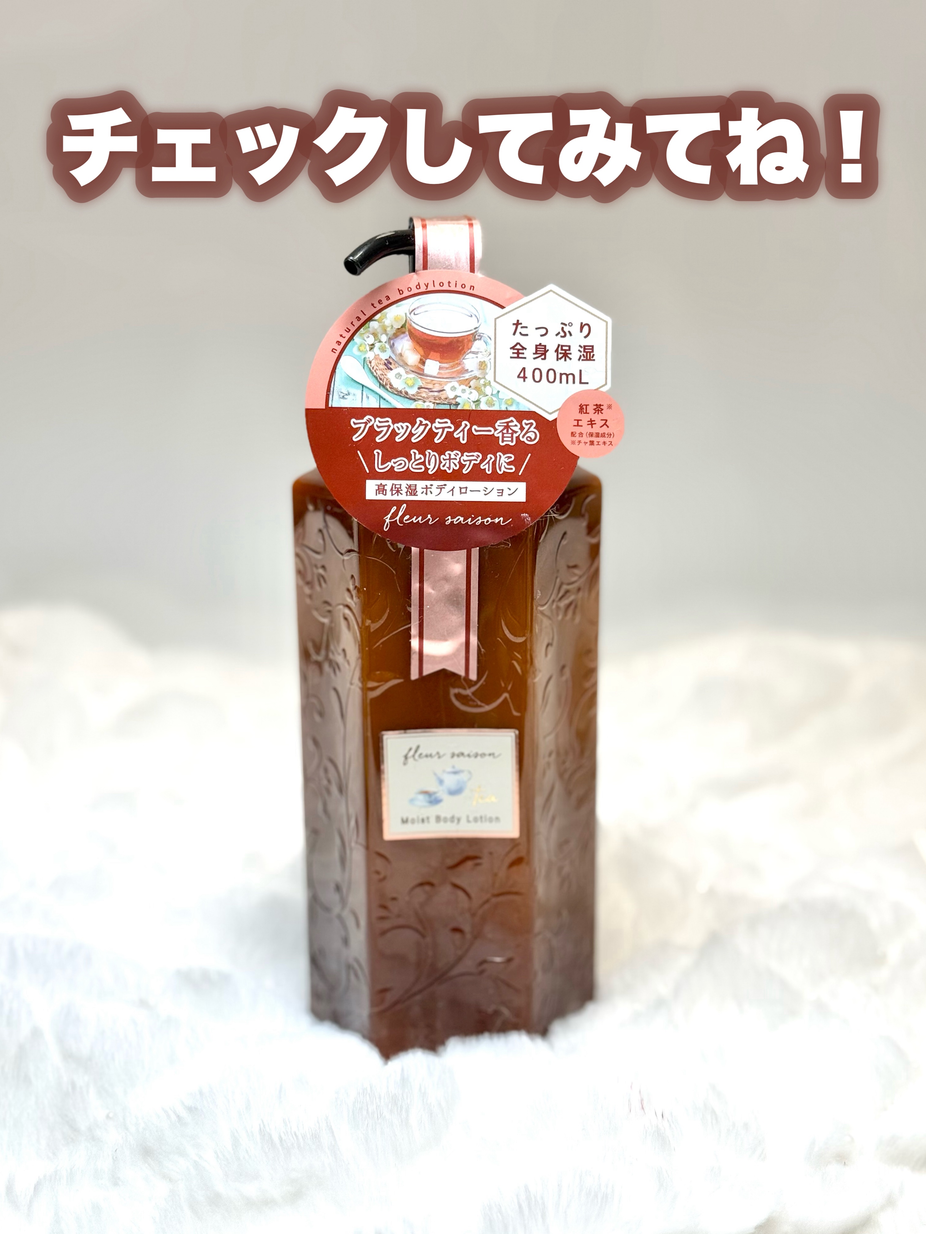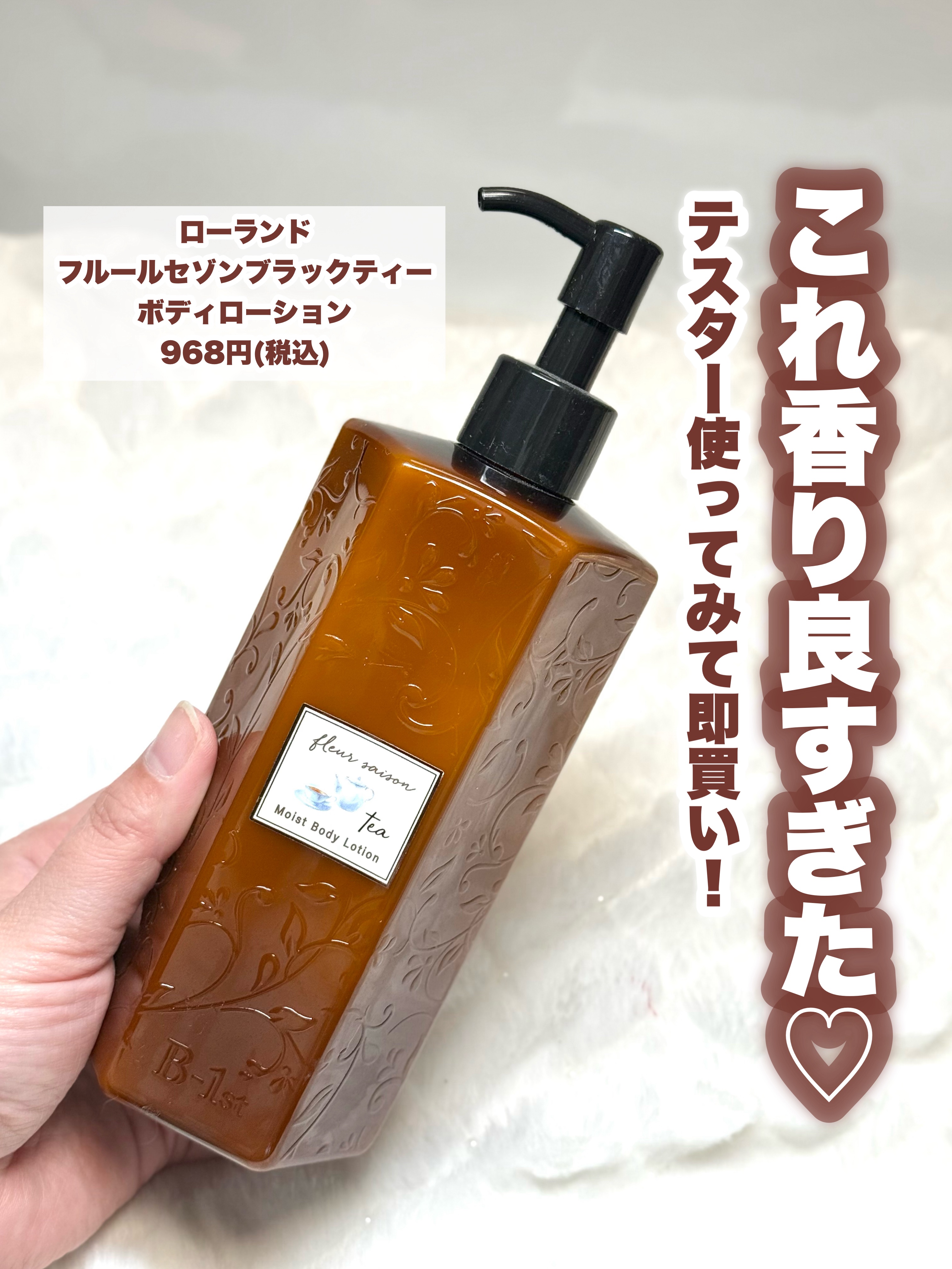 ホワイトティーのすっきりさと、フローラルムスクのふんわり甘い香りがしっかりめだけどふわっと広がる感じ。 紅茶缶のようなパッケージなのも可愛すぎる!インテリアとして飾るのも良し✨ しっとりなのにベタつかない保湿感で、みずみずしいもちもち感🥰