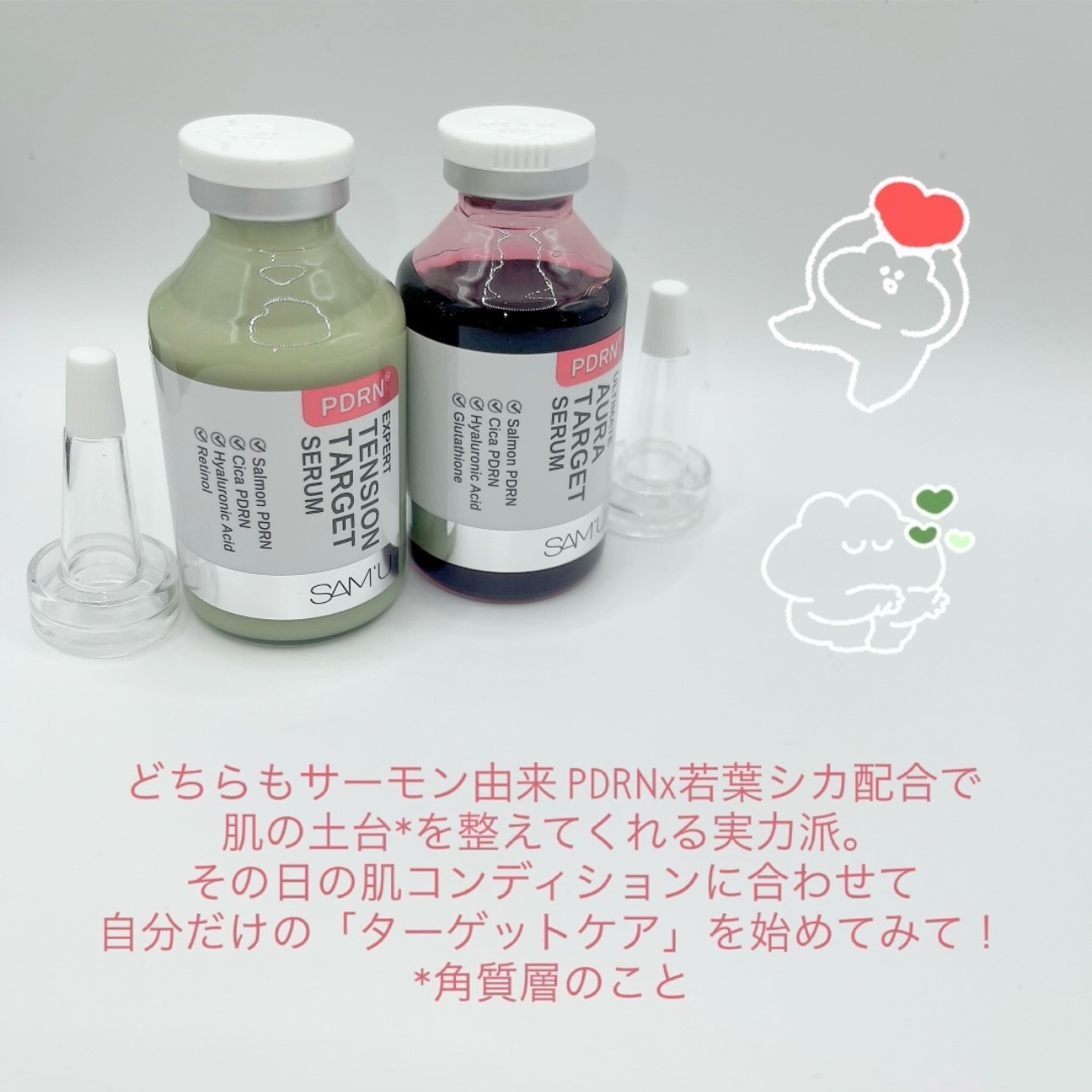 サミュから新しく登場したPDRNターゲットセラムシリーズがついに解禁✨11/21(金)~12/3(水)のQoo10メガ割でお得に買えるチャンスも到来!オーラターゲットセラムサーモン由来PDRN×ヒアルロン酸キューブで、みずみずしいツヤをまとっ...