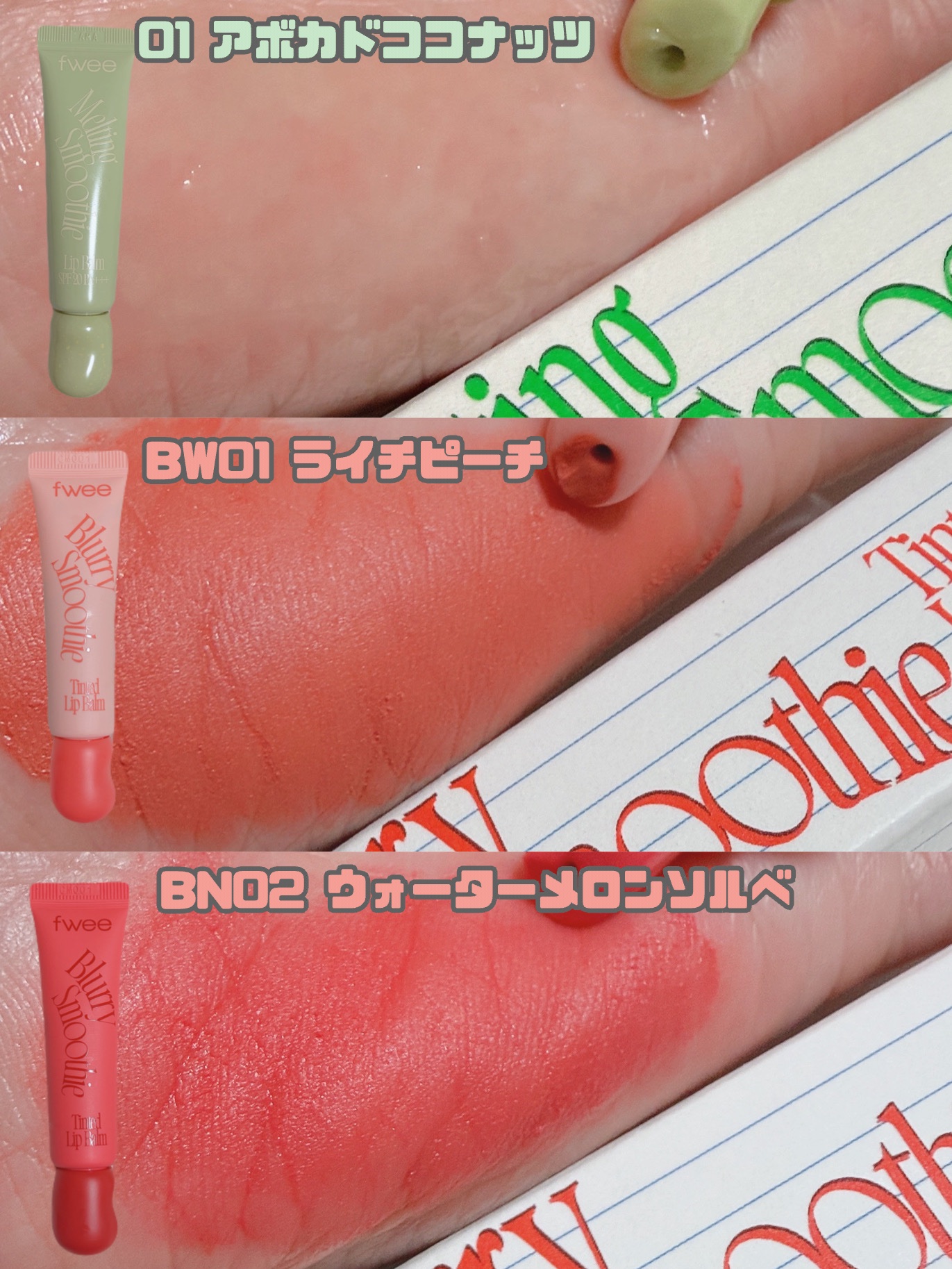 韓国の新トレンド“ヘルシープレジャー”がコンセプト!fweeからスムージーリップバームが新登場🍓🍒まるで3Dグロスをリップバームにしたような グロウスムージーリップバーム🍮まるでプリンポットをリップバームにしたような ブラースムージーリップバ...