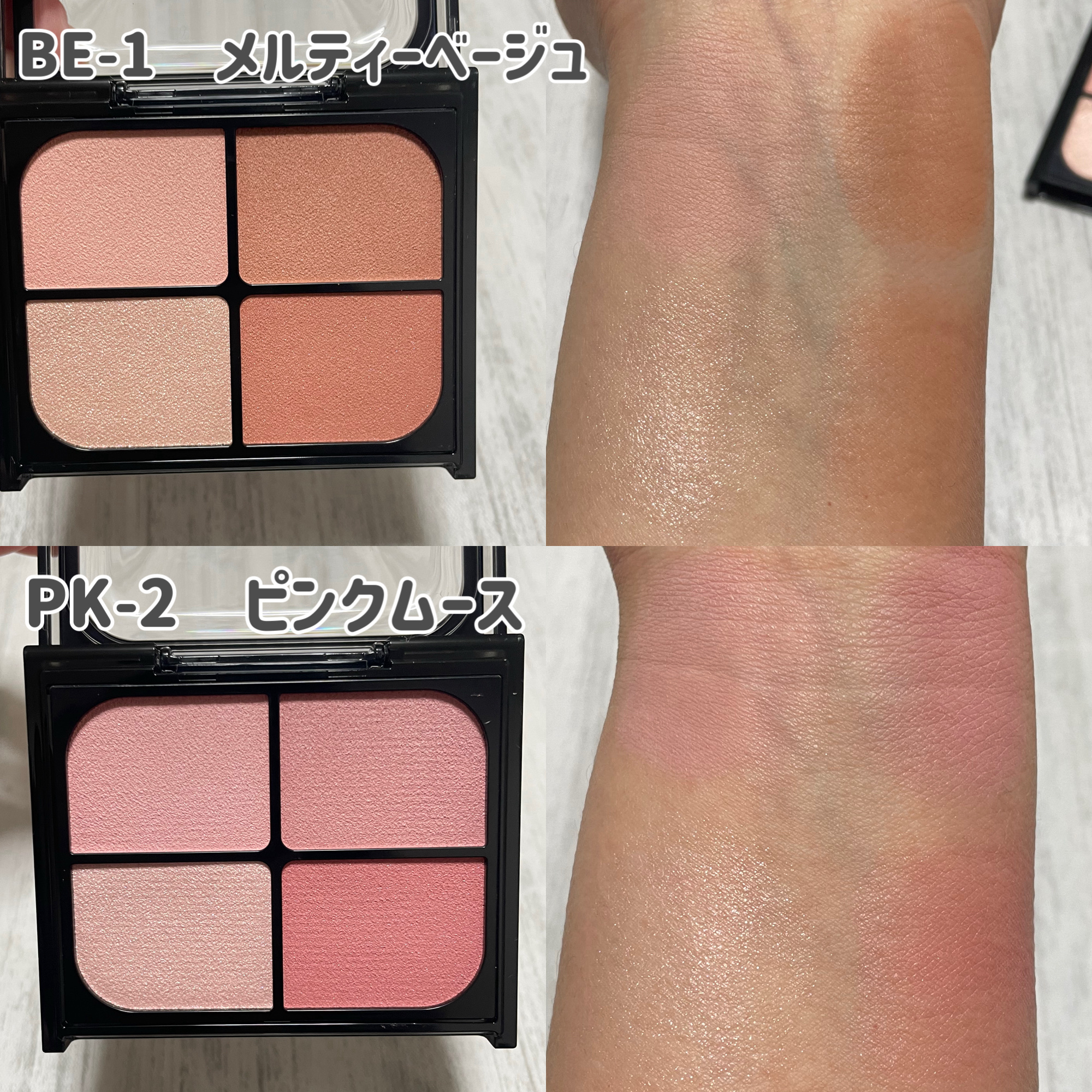 - 頬まで広く色をのせて、目もと印象拡大。 滲みでるような発色で立体感・血色感を同時に叶えるチークシャドウパレット。