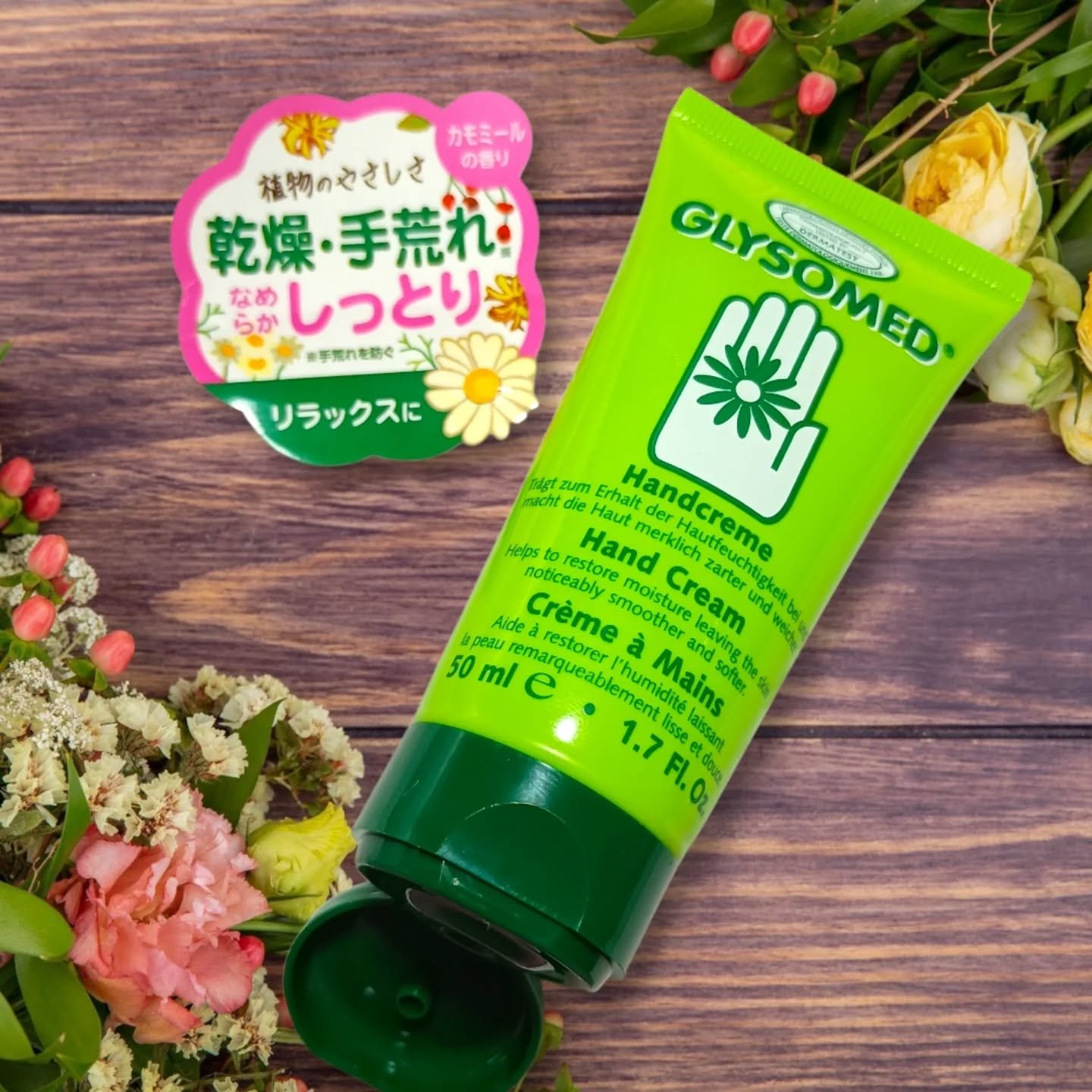 カナダで愛され続けている『グリソメド』🌿 カッサカサの超乾燥手肌を濃厚なクリームが指先までしっとり包み込むから、うるおいを逃さないのが特徴です✨ のびがよくてやさしいカモミールの香りがふわっと漂っていい香りがします💗