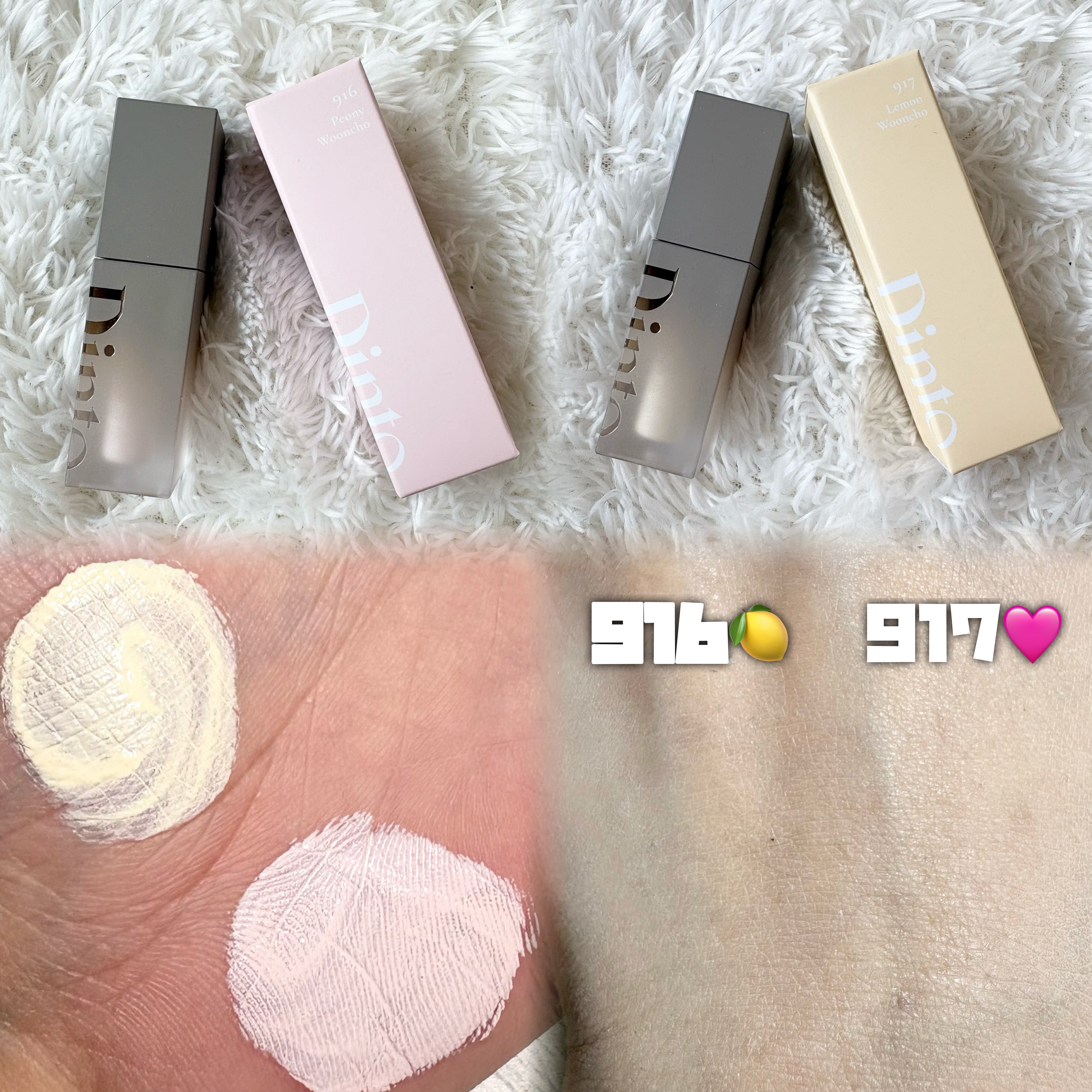 Dinto☁️⸝⸝꙳ライトベールカラーコレクター916ピオニー雲楚🌸917レモン雲楚🍋・みずみずしいテクスチャ・少量でも伸びが良い・微細粒子でムラなく密着して持ちがよい・厚塗り感がない916ピオニー雲楚🌸・くすみをピンクの補色で自然にトーンア...