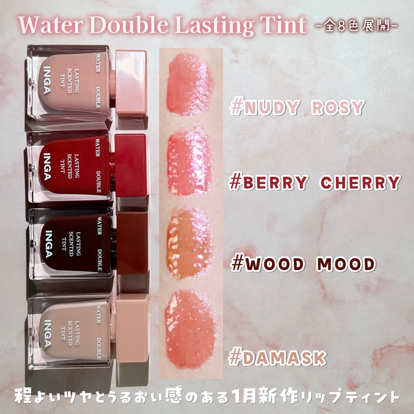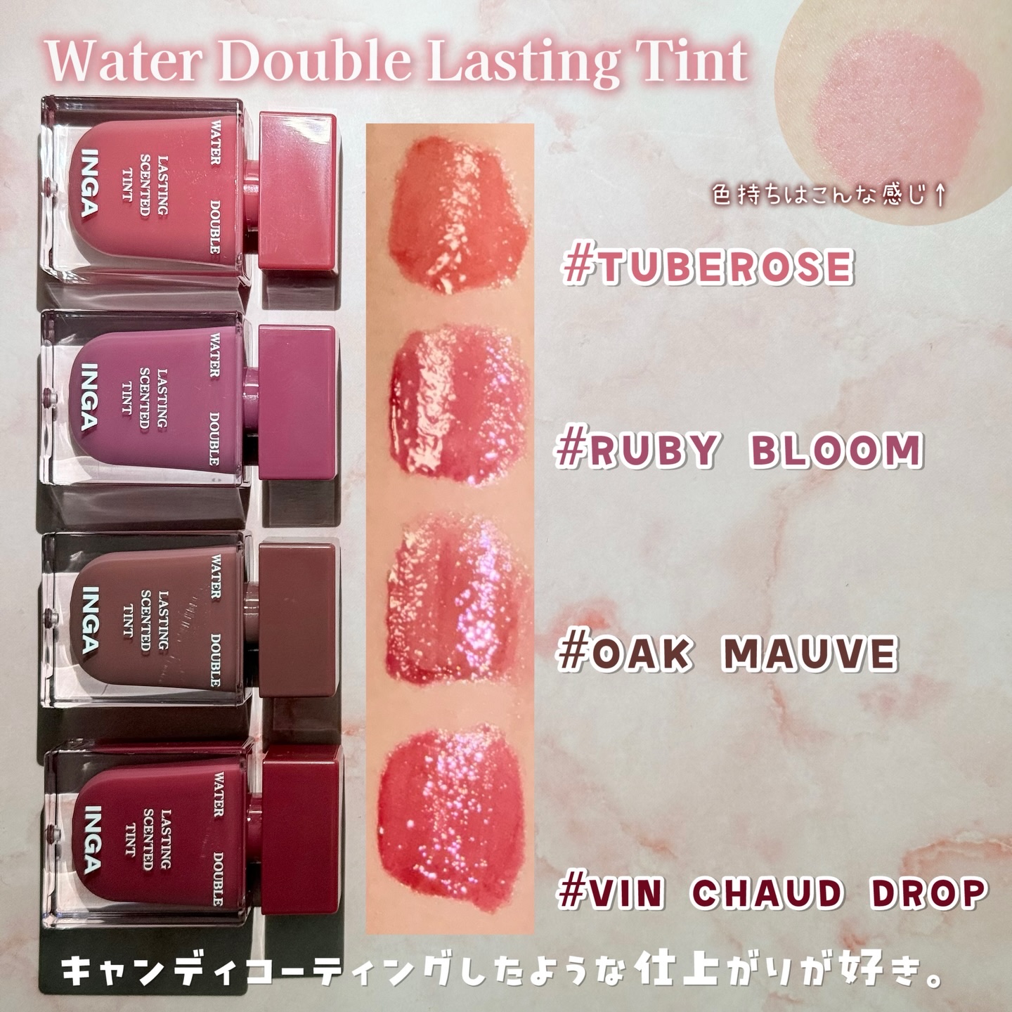 1月初めに発売予定の新作ティントをお試しさせてもらいました💕めっちゃ嬉しい!!❣️INGA❣️ウォーターダブルラスティングセンティッドティント💋@inga_jp香水みたいなかわいいデザインだよね!長持ちする光沢感&発色力!もちろん唇の保湿とし...