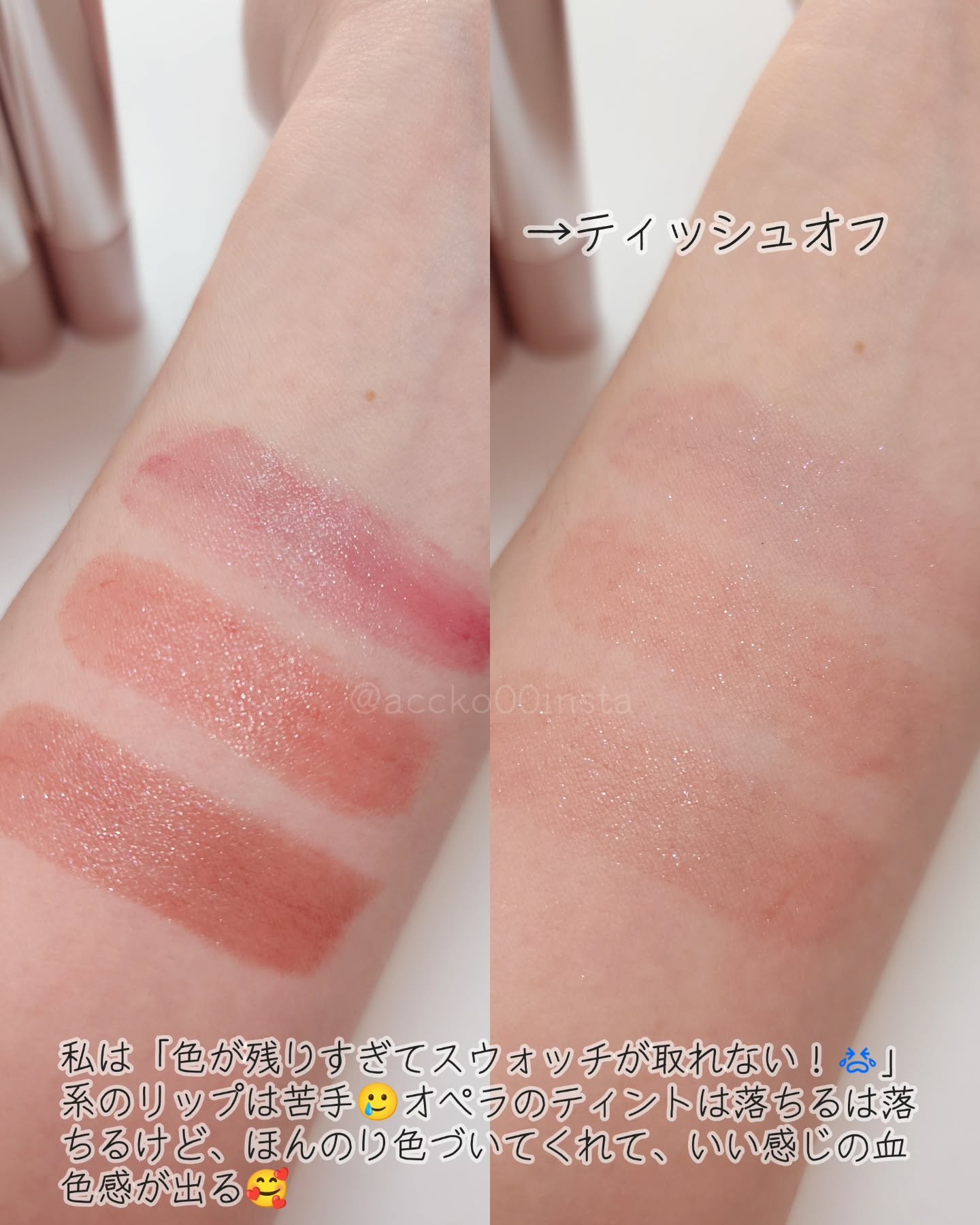 .オペラのティントのバレンタイン限定色410カカオフレイズはピンクラメが入ったチョコレートブラウン🍫🍓フリーズドライのいちごが散りばめられたチョコみたいでかわいすぎませんか…!オペラのリップってかわいらしい感じの色が多いイメージだったけどこれ...