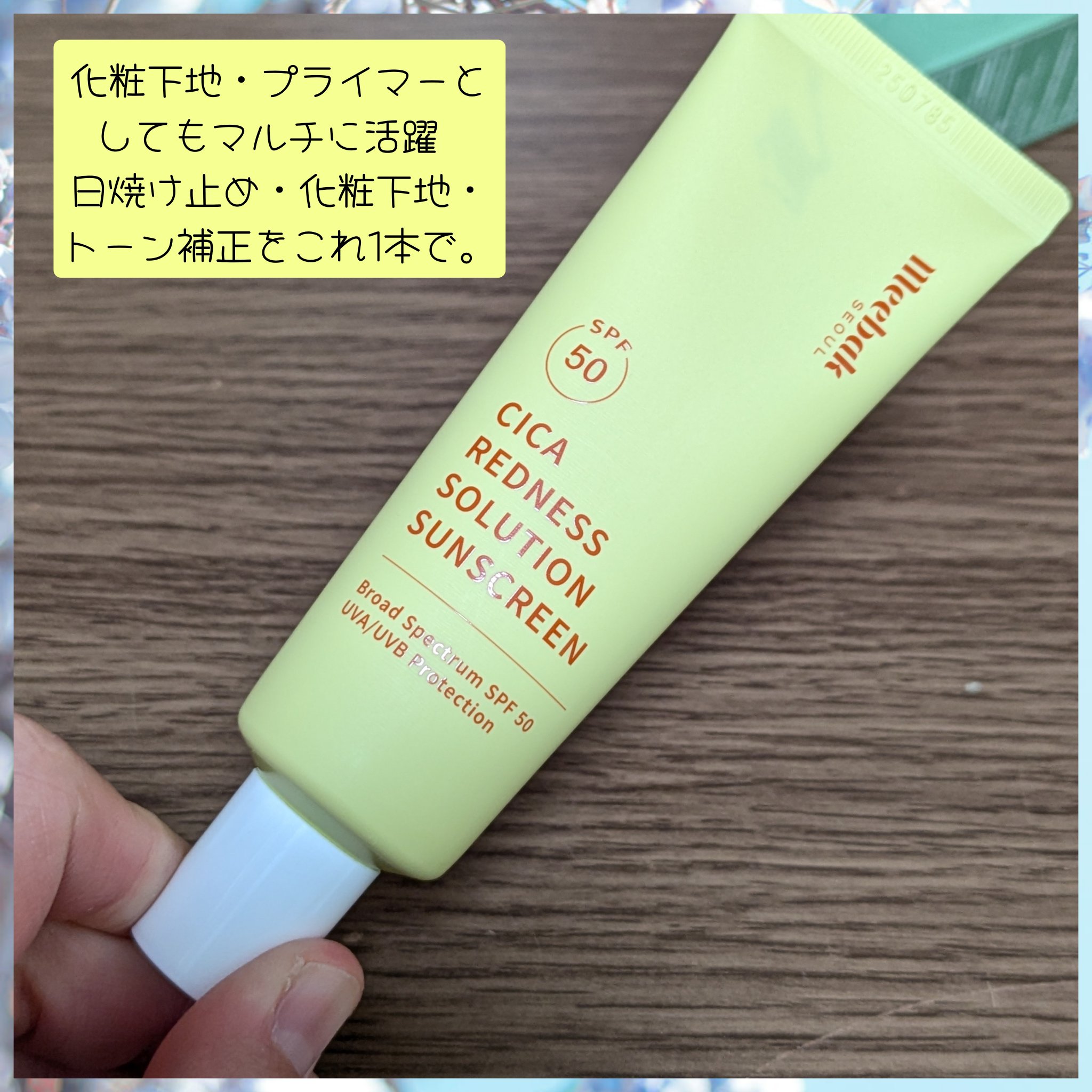 Meebak1本で5役のマルチベース🙆♂️☀️CICAレッドネスサンクリーム最初びっくりすらこのグリーンが肌の色ムラや、くすみ*1、色ムラをカバーしてくれる万能な日焼け止め😳✨馴染ませていくと不思議と肌に馴染んでグリーンだったのが嘘かのよう...