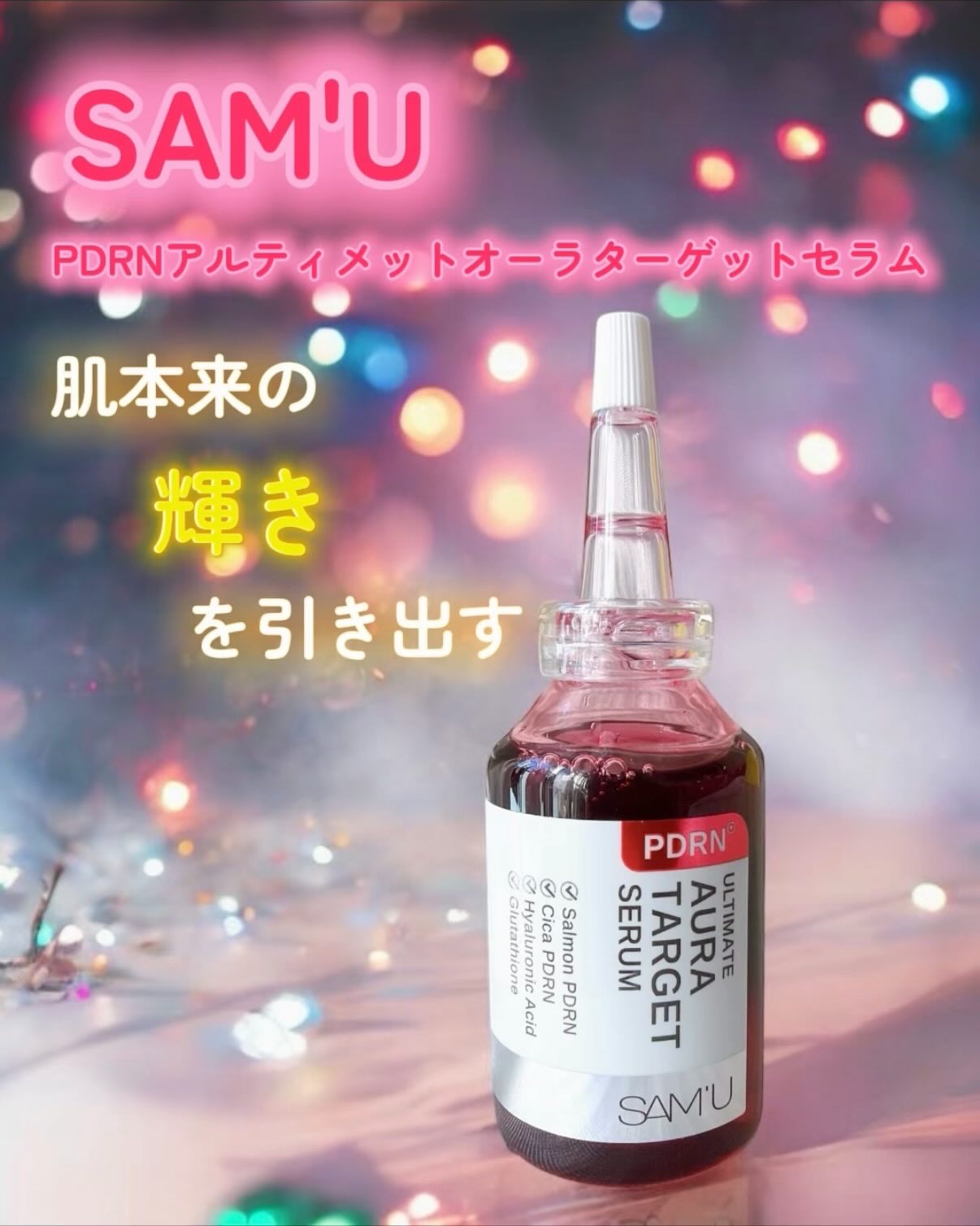 SAM’U💚❤️PDRNシリーズの美容液2種💚PDRNアルティメットオーラターゲットセラム•肌のツヤ・透明感を引き出す美容液・くすみが気になる方、明るく均一な肌印象にしたい方✨️使い方✨️・朝・夜どちらもOK・化粧水の後...