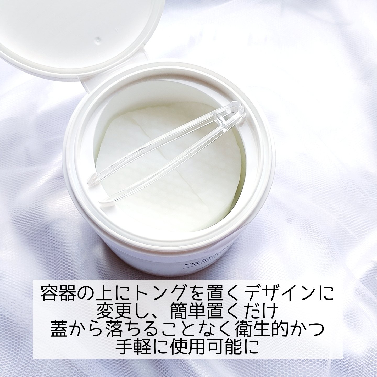 - リニューアル発売 古くなった角質や皮脂をやさしくふき取り、 しっとりなめらかな肌へと導くトナーパッド。 特殊シートとたっぷりの保湿ケア成分で肌へ水分チャージしながら、余分な皮脂や角質をやさしくふき取りキメの整ったなめらかな肌へと仕上げます。 うるおいを抱え込み、乾燥による肌悩みを寄せ付けにくい美しさを持つ肌のPHを追求し、PH5.5の弱酸性に整えました。洗浄後アルカリ性に傾きやすい敏感肌を素早くうるおして保護します。毎日の角質ケアとして使えるよう、肌への刺激の少ない使い心地です。敏感肌にもお使いいただけます。たっぷりの美容液を抱え込むコットンはポイントパックとしてもお使いいただけます。