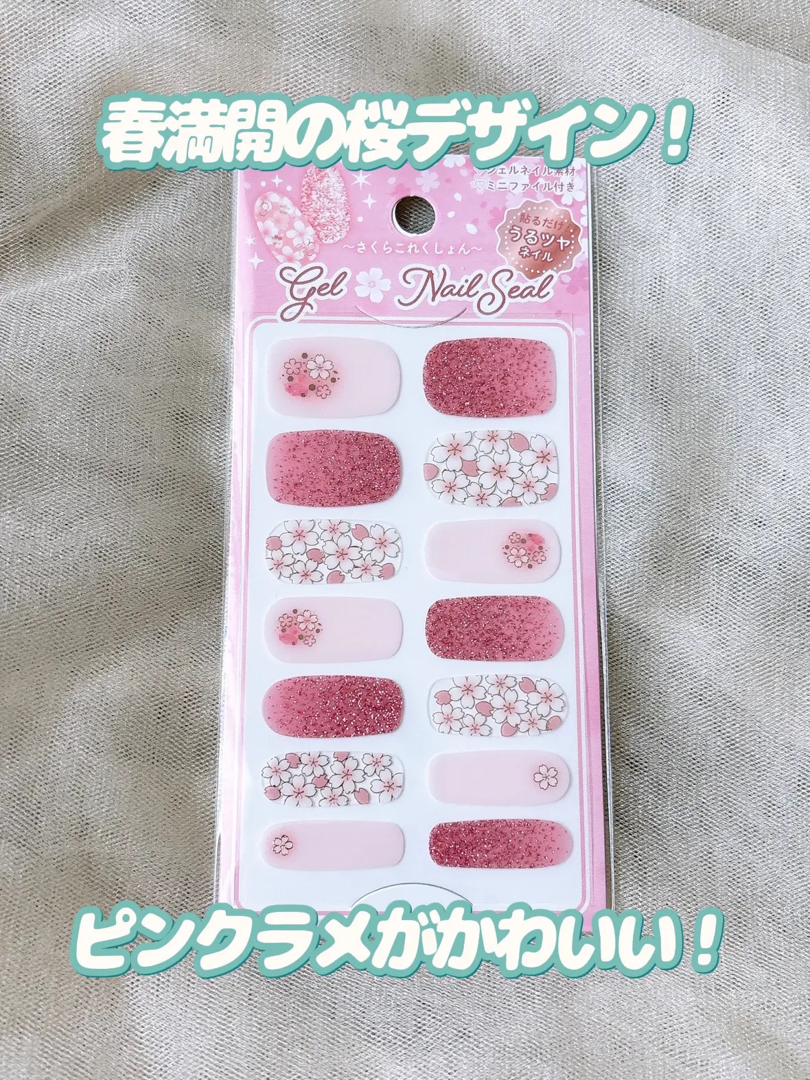 セリアのジェルネイルシール!110円でこのクオリティ本当にありがたいですよね🥺コーティングはしないとシール感めっちゃあるけど😂上手くいけば3週間ぐらいもってくれる!リペアするには枚数が少ないから長持ちしない体で使った方がいいと思いますが💦#n...