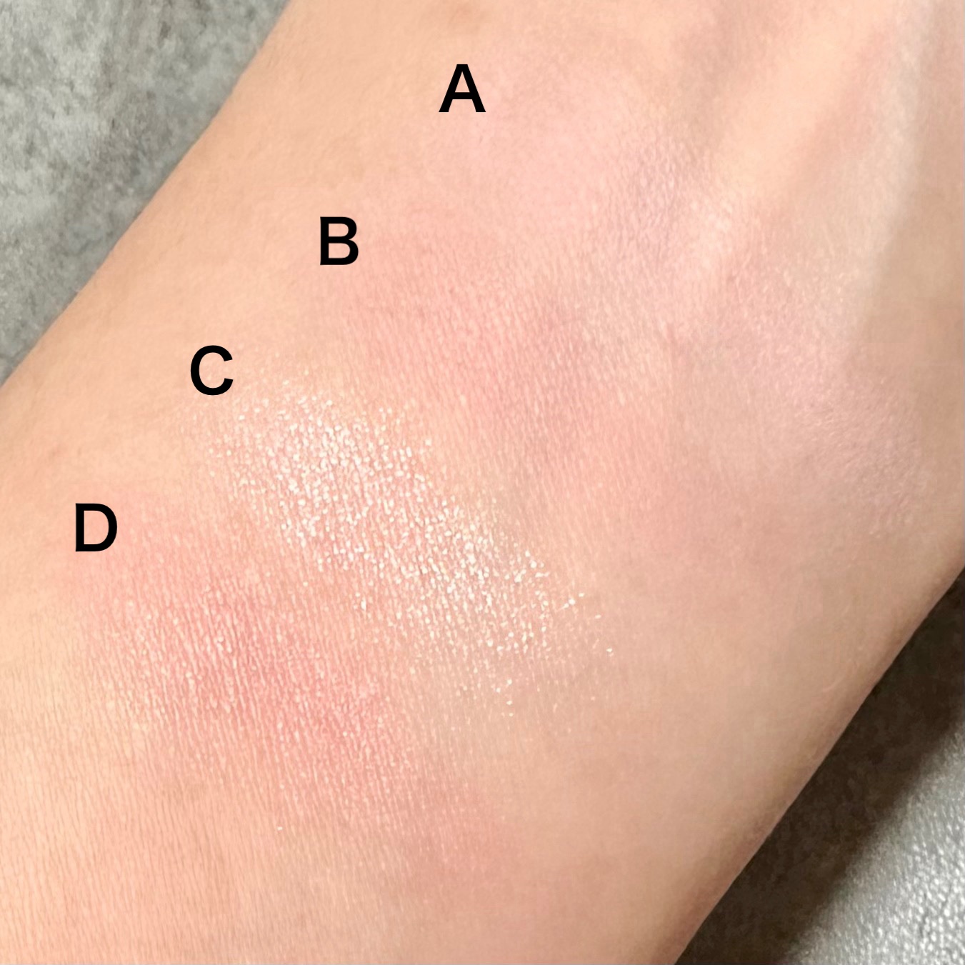 手元でつけるともはや違う色くらいベースで結構変わりました みずみずしくサラッとしてて透け感があるベース 細かいパールに色がついてる感じでがっつり色がつくわけじゃないけど印象をガラリと変えてくれます EX-1しのばせラベンダー 青み吸いにぴったり 透明感と青みをプラスしてくれる