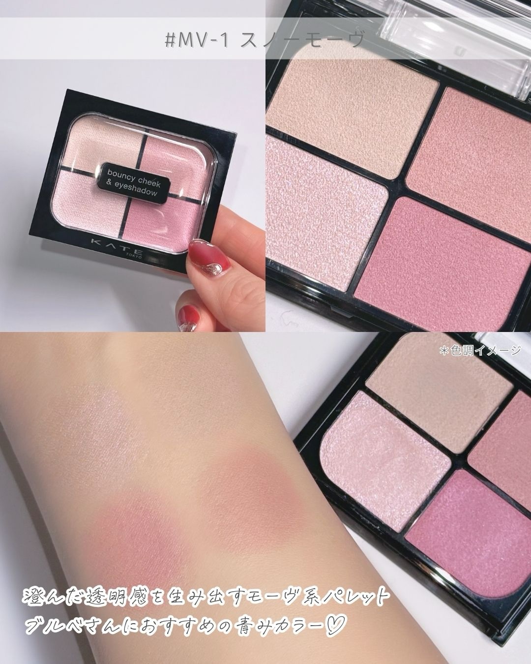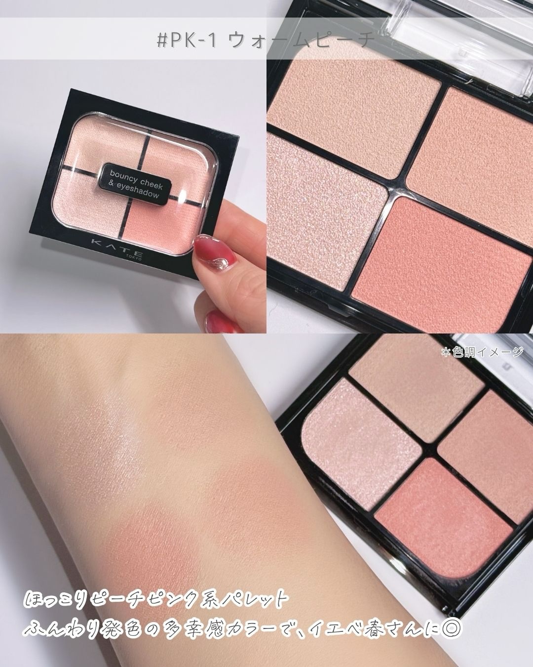 頬までが目元ってどういう事?!😳ˎˊ˗1/24(土)に新発売の春の新作が登場🌸なんと目もとから頼までをアイメイクと捉えるという新発想で作られたアイテムのご紹介🎀・*.♡KATEバウンシーチークシャドウ 全5種アイシャドウ/チーク/ハイライトの...