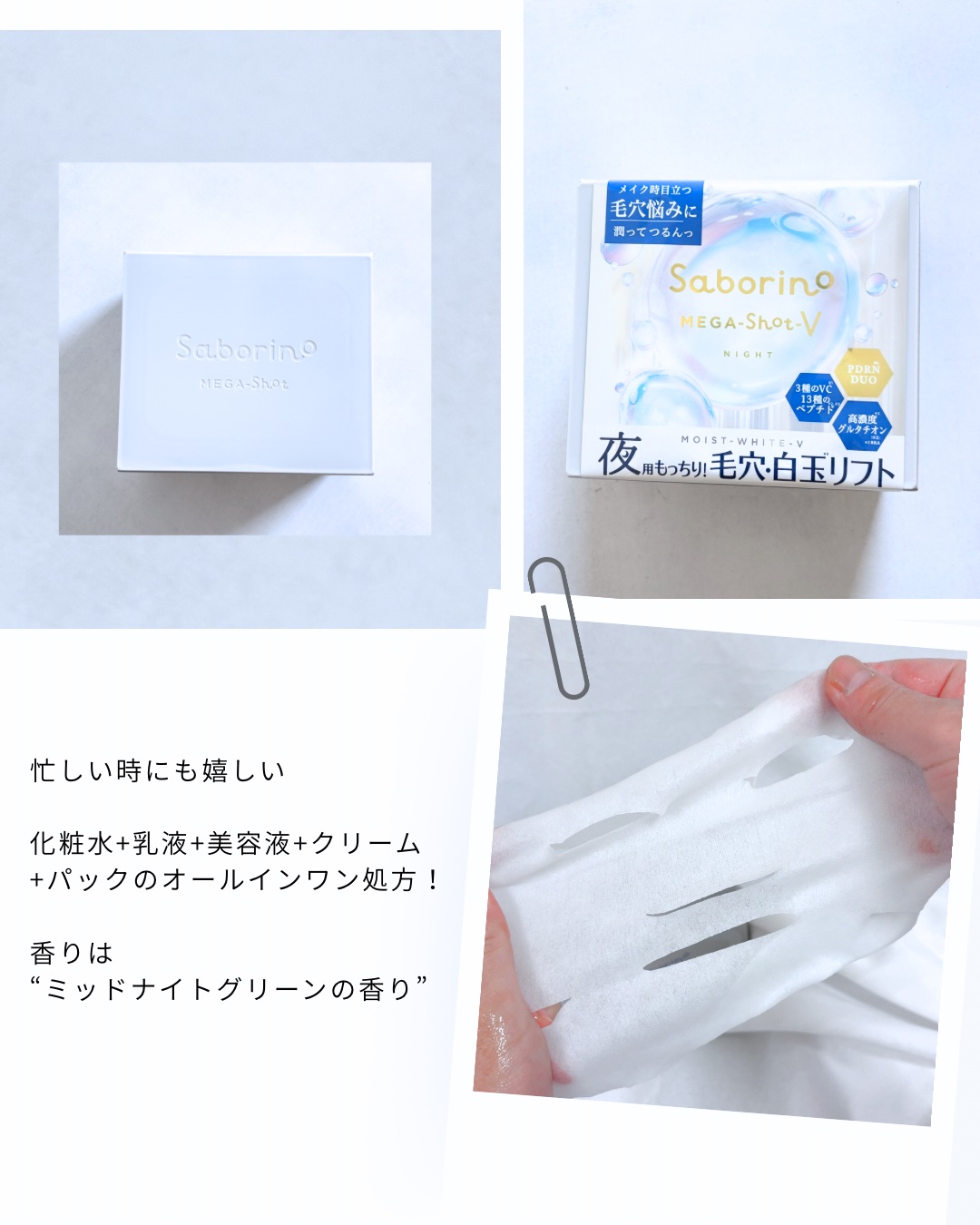 時短でスペシャルなデイリーケア!キレイをよくばろう✨◻️Saborinoメガショット夜用白玉タイトニングマスクV32枚入り¥2,530(税込)BCLカンパニーさまからいただきました!サボリーノのメガショットシリーズにメイク時に目立つ毛穴悩みに...