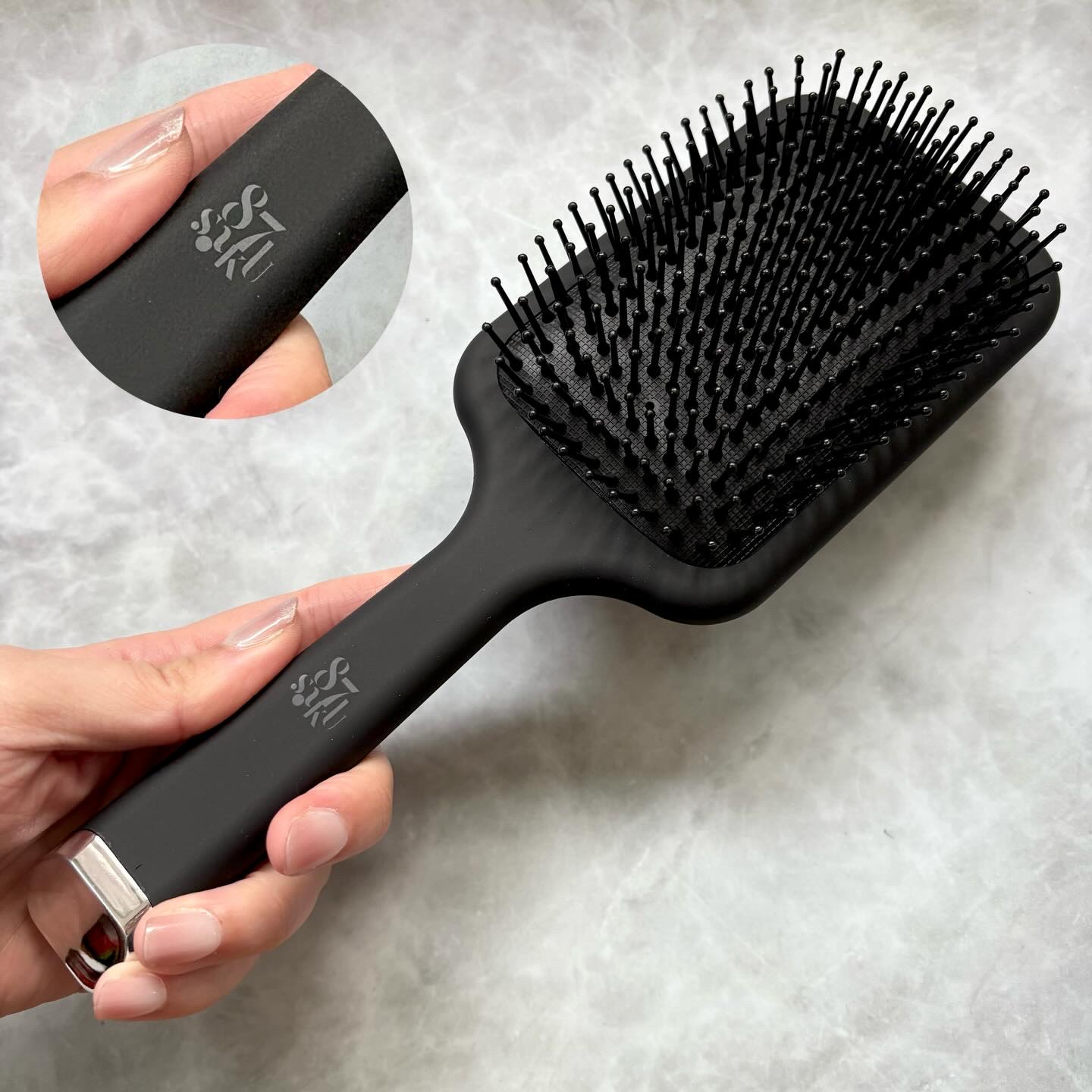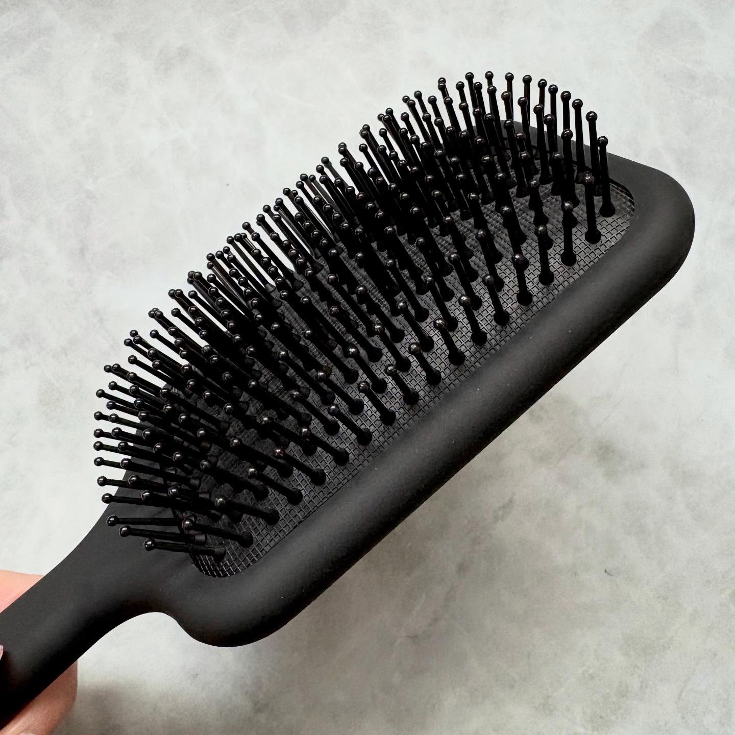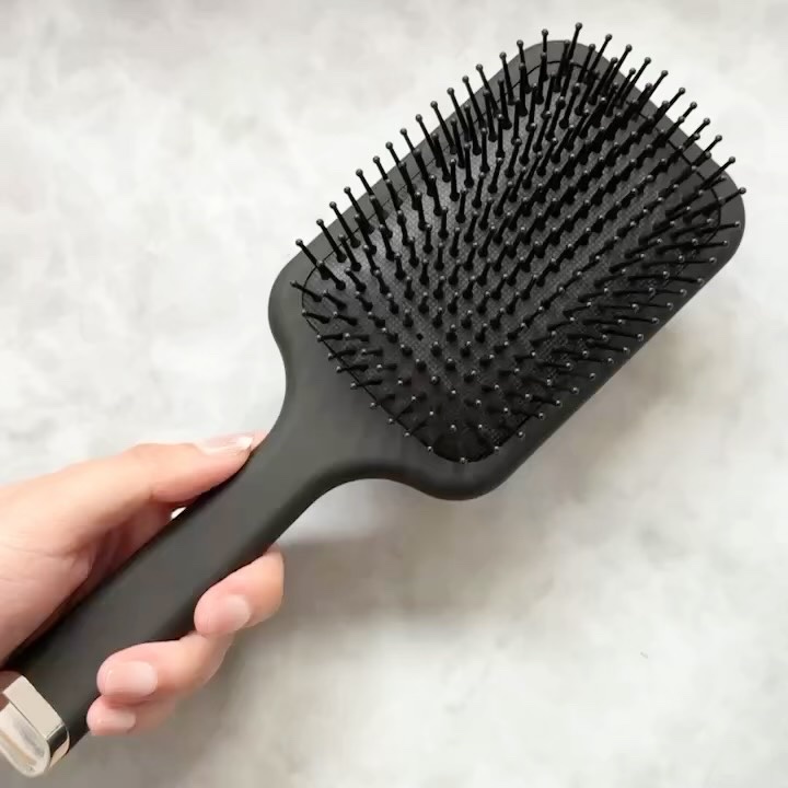 - 広いクッション面が頭皮をやさしい使い心地で刺激。髪の流れを整えながら摩擦を抑え、ツヤとまとまりを守ります。 夜のリラックスタイムにも、朝のスタイリング前にも使えます。 髪と頭皮を整える、癒しの時間を。
