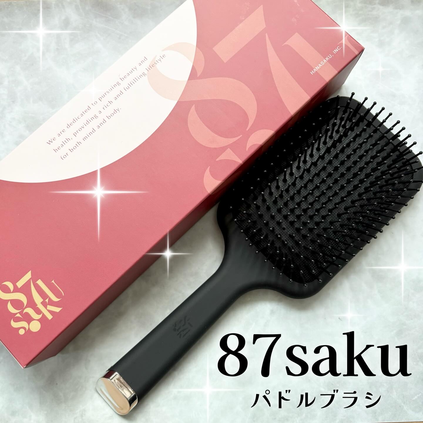 #87saku#ハナサク#パドルブラシ87sakuハナサクパドルブラシ髪と頭皮を同時に整える、癒しの構造ブラシ。広いクッション面が頭皮を心地よく刺激し、血行を促進しながら髪の流れをなめらかに整えます。静電気や摩擦を抑制し、ツヤとまとまりをキー...