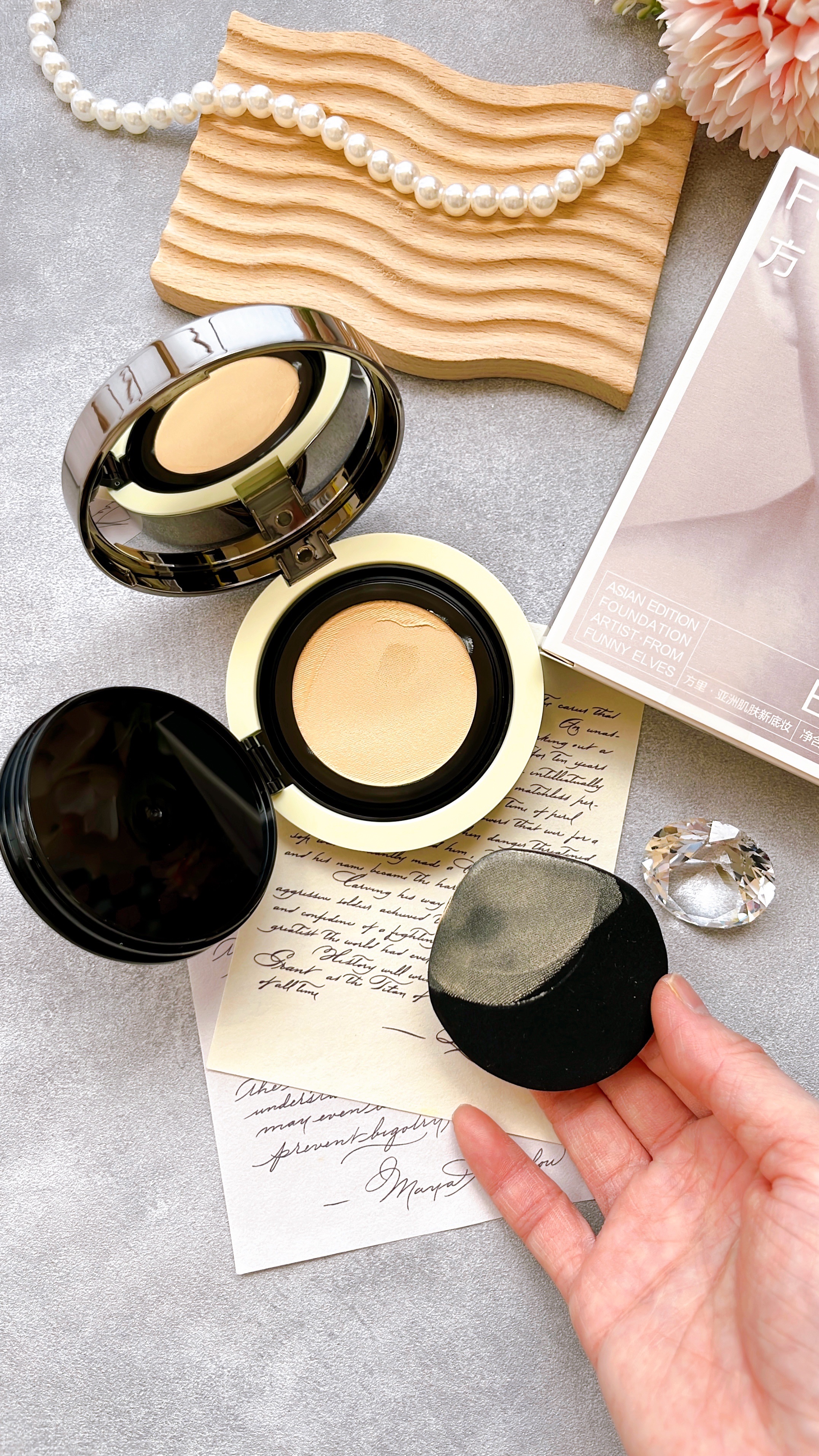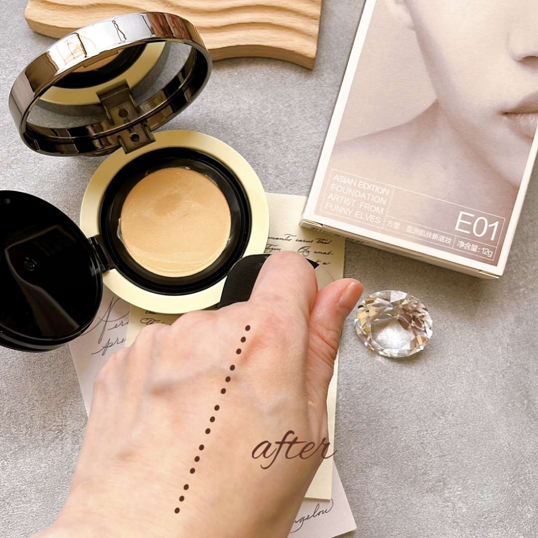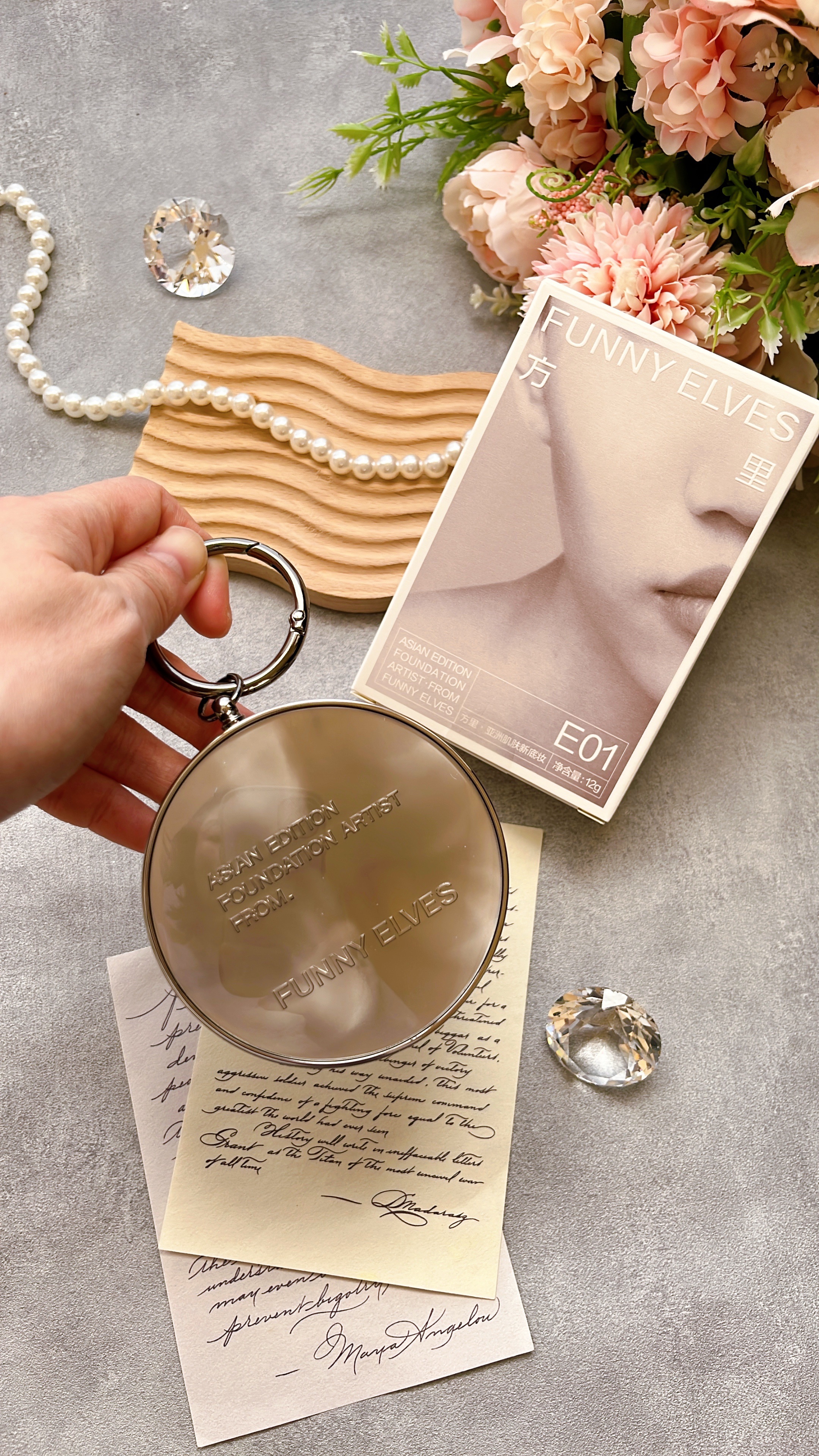 ▫️FUNNYELVES方里 ロングウェアエアクッションファンデーションE01アメリカのベースメイク専門研究所と協力しアジア人の肌を徹底的に研究して開発したアジア肌のための、新しいベースメイクブランド日本でもソフトマットプレスト...
