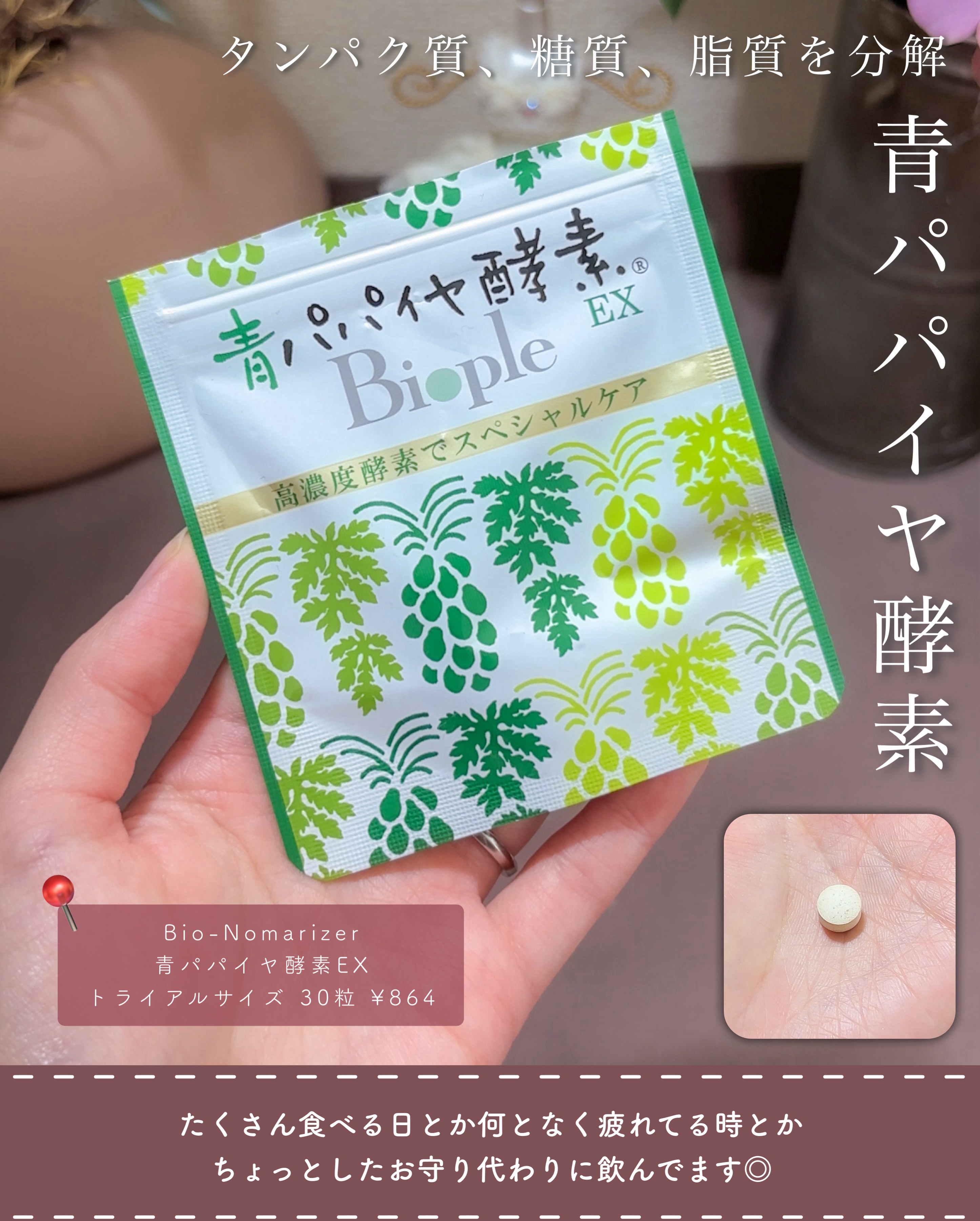 CosmeKitchen購入品!Bio-Nomarizer青パパイヤ酵素EX.YouTubeやサイトでも推されているインナーケアのサプリメント。悩みに悩んで購入してみました💸個人的に感じたのは、☑︎お通じの改善☑︎食べすぎた翌日でも疲れが残り...