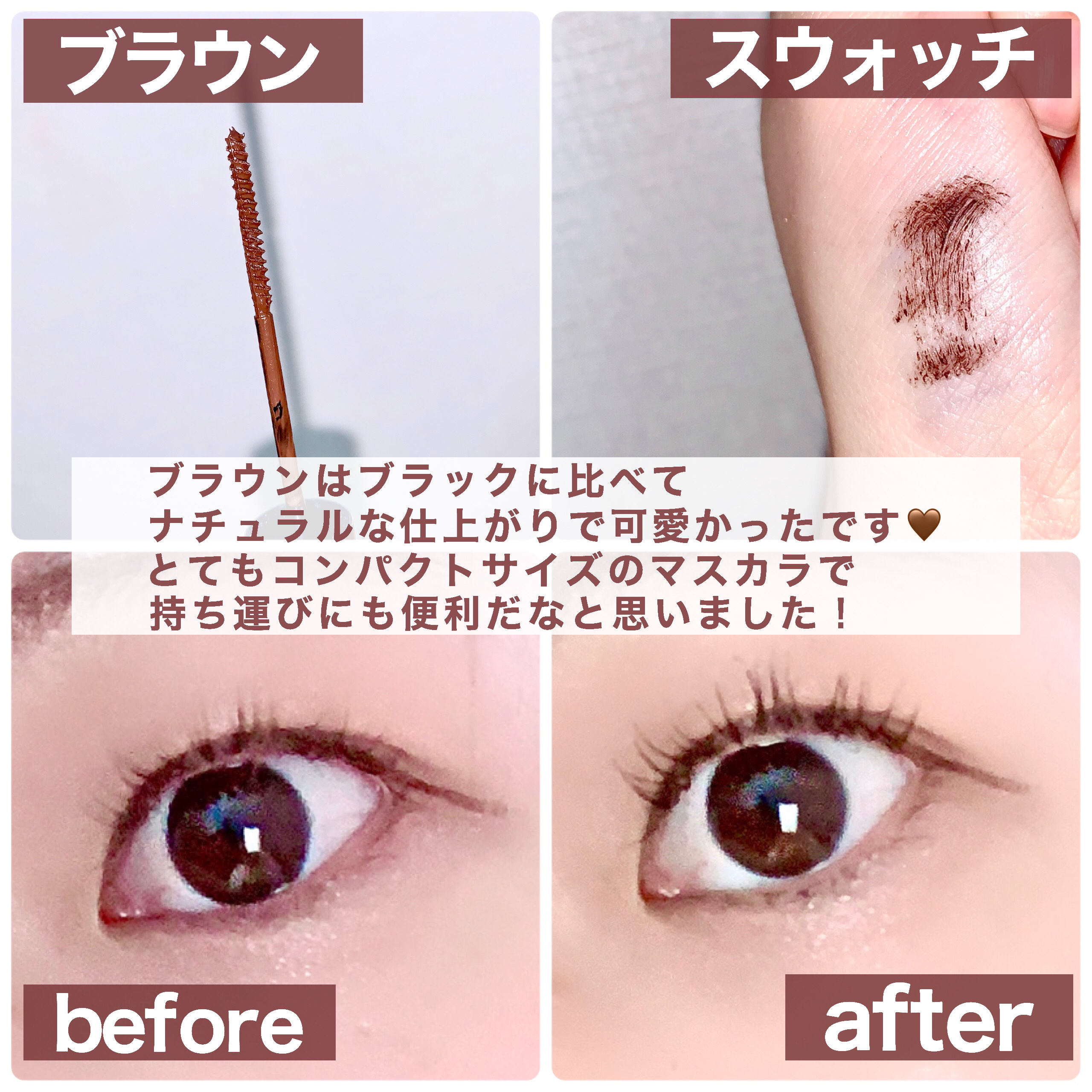 筆が細いのでとても描きやすく、細いラインも太いラインも自由自在です!! また、こすれにも強いので安心♪ 落とす時はお湯で落とせるので楽でいいですよね! 今回頂いた新色コッパーブラウンは明るめのブラウンでとっても可愛い色味です! ブラウンですが夏っぽいオレンジメイクに似合いそうなカラーで、ブラックよりも抜け感が出ます✨