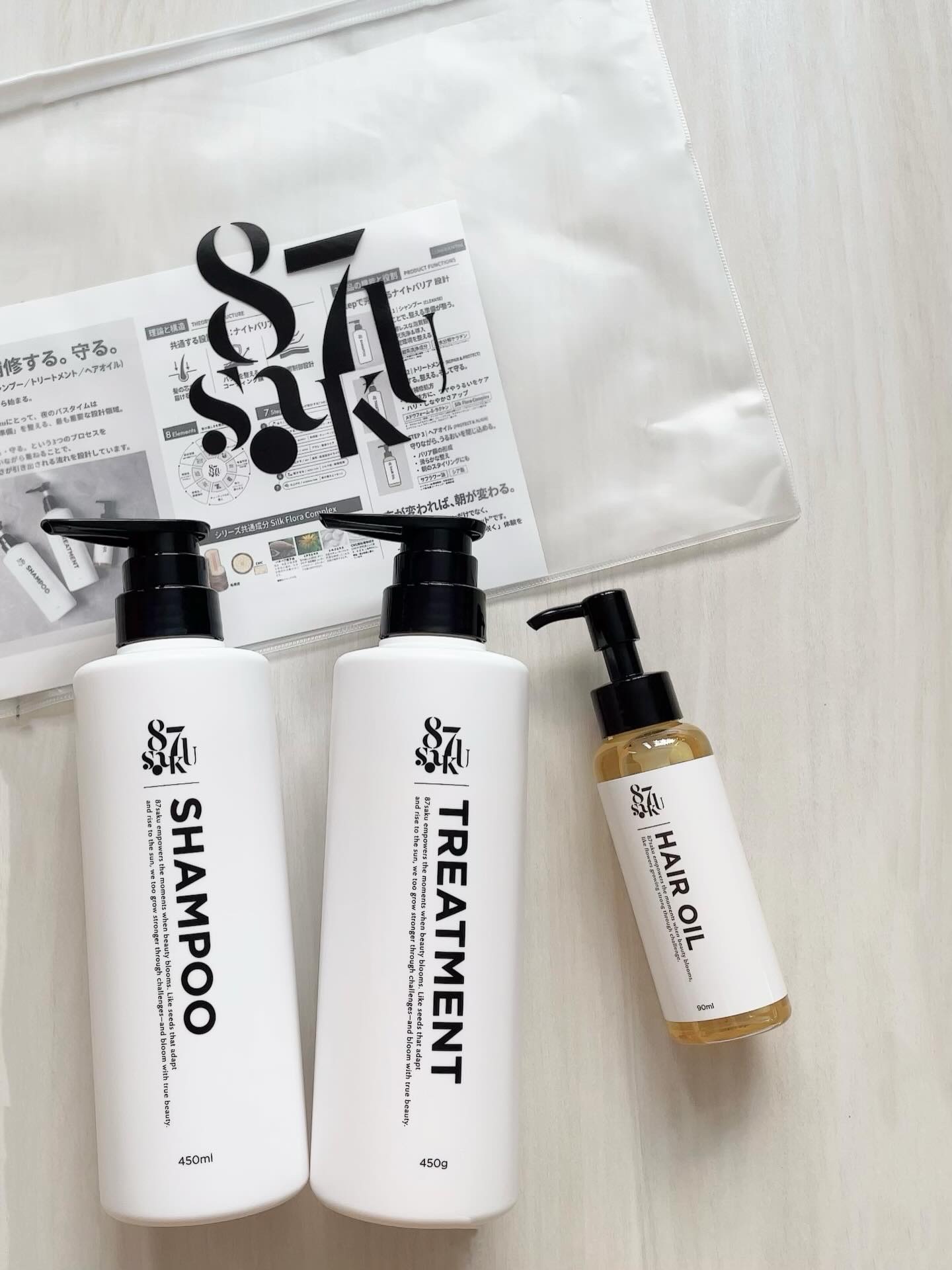 ~髪を「咲かせる準備」を整える~87saku(ハナサク)シルキーリペアシャンプー/トリートメントシルキーリペアヘアオイル(シトラス&ハーバルウッディの香り)⋆⋆美しい髪は、夜から始まる🌛*゜そう考える87sakuにとって、夜のバスタイムは髪を...