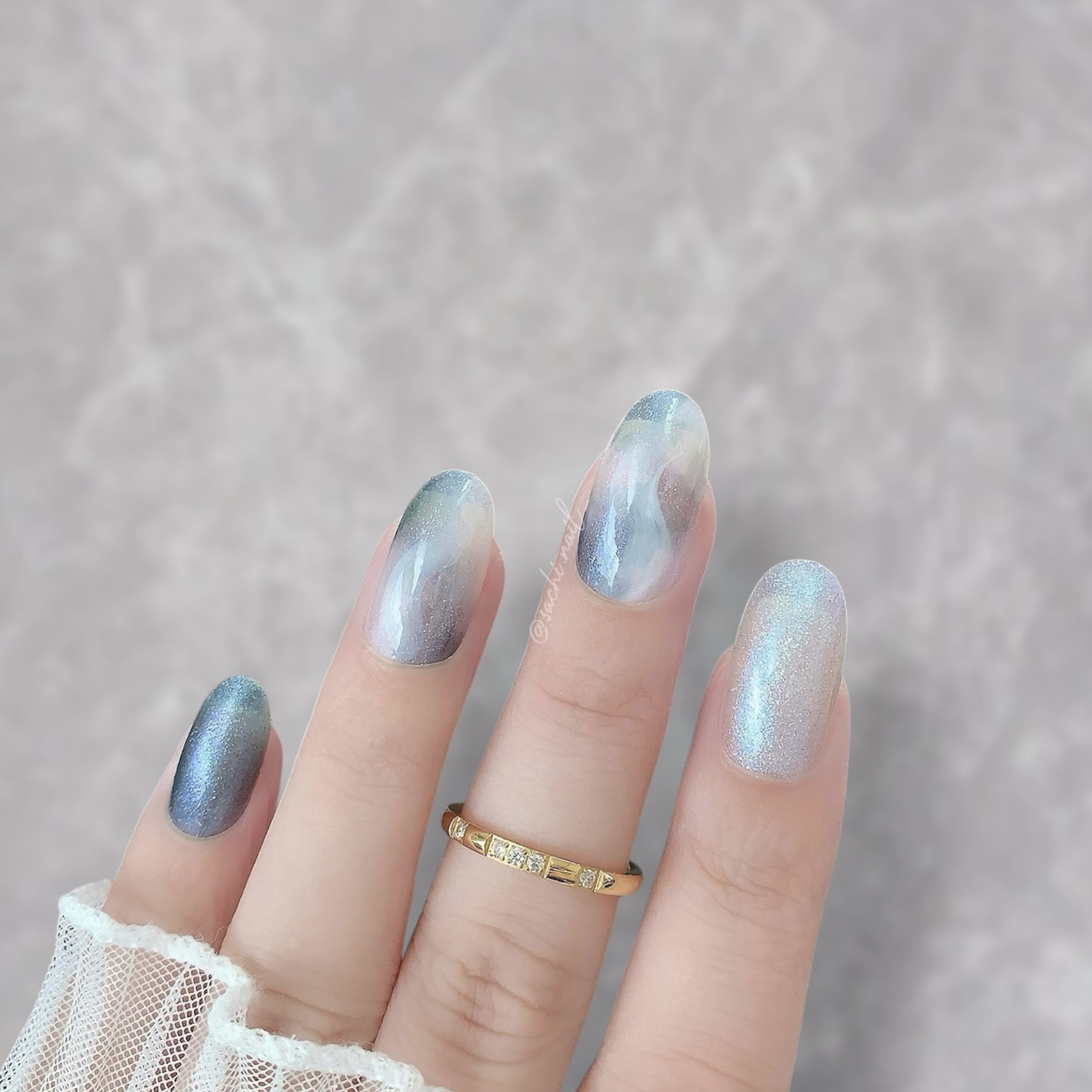 ワンカラーでも指ごとに色を変えるだけでオシャレに見えます💕 画像のようにゴールドラインとストーンを少し足すだけで華やかさがアップ🥰 何度かご紹介したことのあるスポンジで作るグラデーションです✨ スポンジを使うことで境目が綺麗に馴染んでくれます💕 アルミホイルの上でブラウンとトップコートを1:1くらいで混ぜたものを、トップコートのハケに取って3箇所に塗るだけ👌 事前に混ぜたものを塗ることで、爪の上でぼかすより簡単に出来ます💕 ベースカラーが乾く前に点置きしてぼかすことで綺麗にぼかせます✨ スピードが大事なので、使うポリッシュのキャップは全て開けておきましょう😊 天然石のラインはガタガタの方がより天然石っぽく見えるので、ラインを描くのが苦手な方でも大丈夫🙆♀️ 難しそうに見えて、やってみると意外と簡単に出来ます♡
