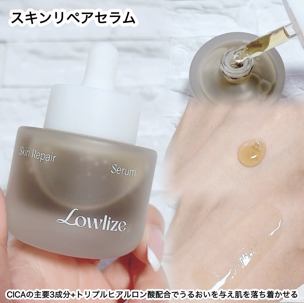 Lowlizeスキンリペアセラム🌿CICA主要成分3種+トリプルヒアルロン酸配合でゆらぎがちなお肌にうるおいでアプローチ肌の皮脂バランスを整えてすこやかな肌状態へ導くセラム🪞✨水分たっぷりのジュレ状テクスチャーで、馴染ませると保湿感たっぷり💧...