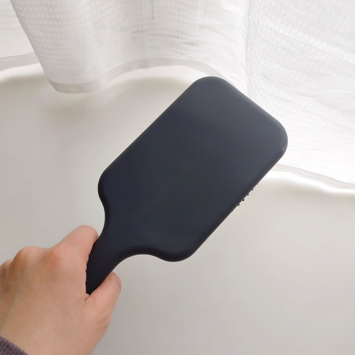 - 広いクッション面が頭皮をやさしい使い心地で刺激。髪の流れを整えながら摩擦を抑え、ツヤとまとまりを守ります。 夜のリラックスタイムにも、朝のスタイリング前にも使えます。 髪と頭皮を整える、癒しの時間を。