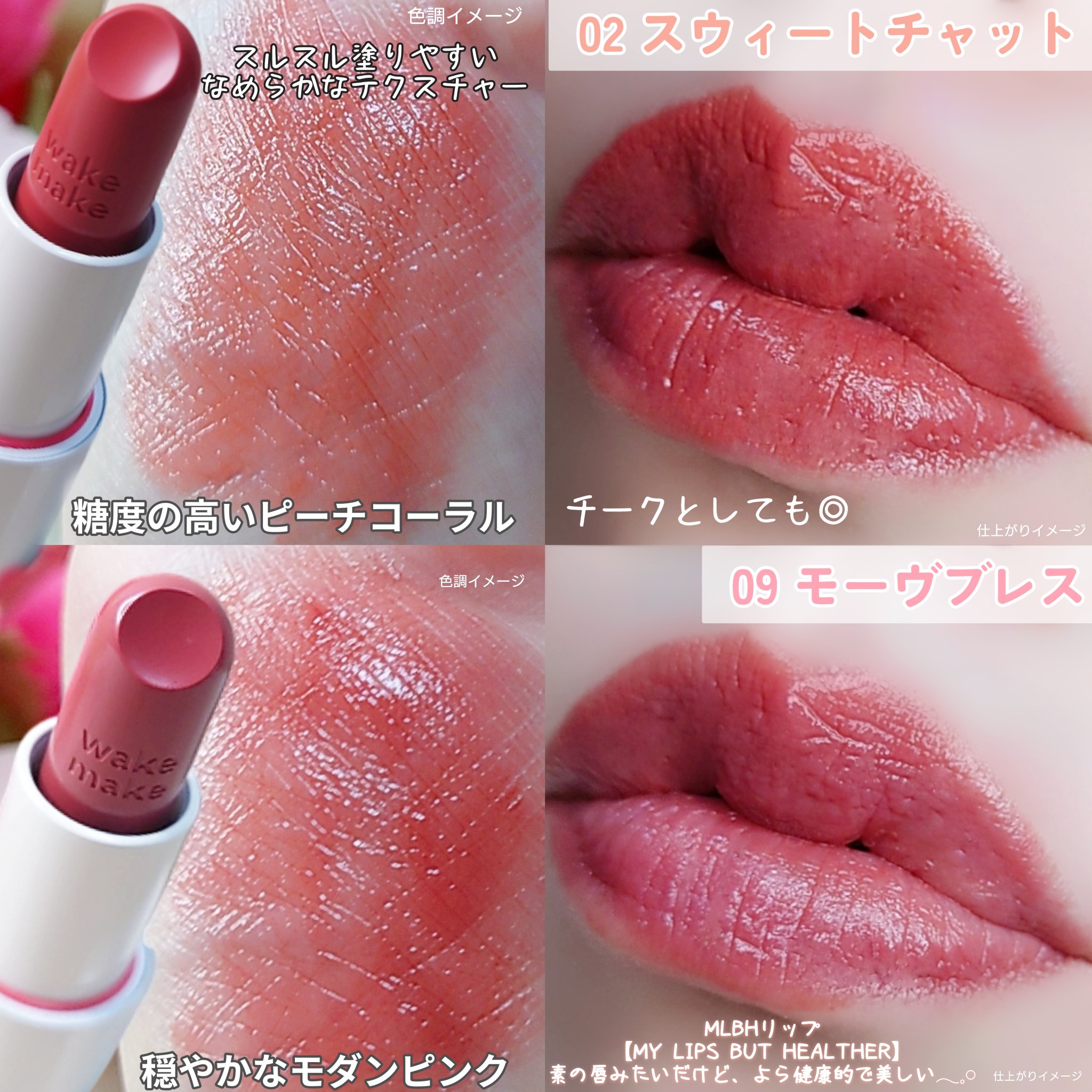 - 塗るたびに、ときめきが走り出す。メイクの楽しさを加速する「#止まらぬリップ」。 肌なじみのいい発色と自然なツヤで今っぽい唇に仕上がる、10色展開。 うるおいをチャージして、ほんのり血色感*¹をじゅわりと与えます。 どんな時でも使いやすい軽やかな塗り心地で、なりたい私を叶える仕上がりに! 【POINT】 ■ヘルシーに魅せる#MLBHリップ 「MLBH =MY LIPS BUT HEALTHIER」。自然なツヤとカラーで、いつもの唇がもっと健康的な印象に見える仕上がりに! ■〝今っぽさ〞を叶える自然なツヤめき ツヤと血色感*¹がほどよく両立。ラズベリーシードオイル*²配合で、うるおいを守りながらツヤめく唇に。 ■軽く均一にフィット。チークにも◎ ひと塗りでムラを防いでフィットし、自然な血色感*¹をプラス。チークにも使えます。 *1 メイクアップ効果による *2 (ラズベリー種子油/コハク酸トコフェロール)アミノプロパンジオールエステルズ(整肌成分)