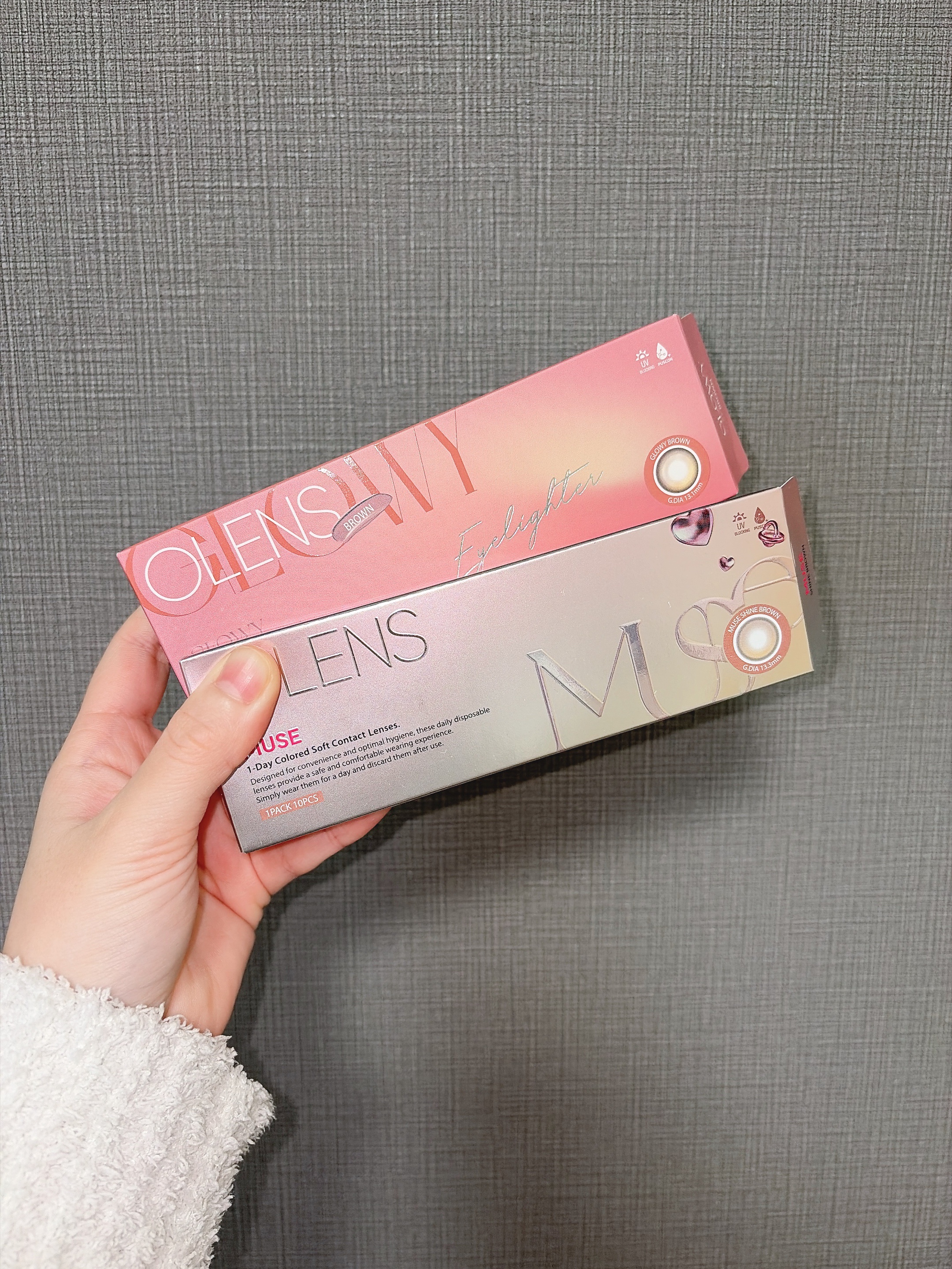 ナチュ盛り水光vsしっかり盛れ水光🫧OLENSのGlowy1dayblownとMUSE1dayblown🤍MUSE1dayは、全直径[DIA]14.2mm着色直径13.3mmベースカーブ(BC)8.6mm度数範囲0.00~-8.00というスペ...