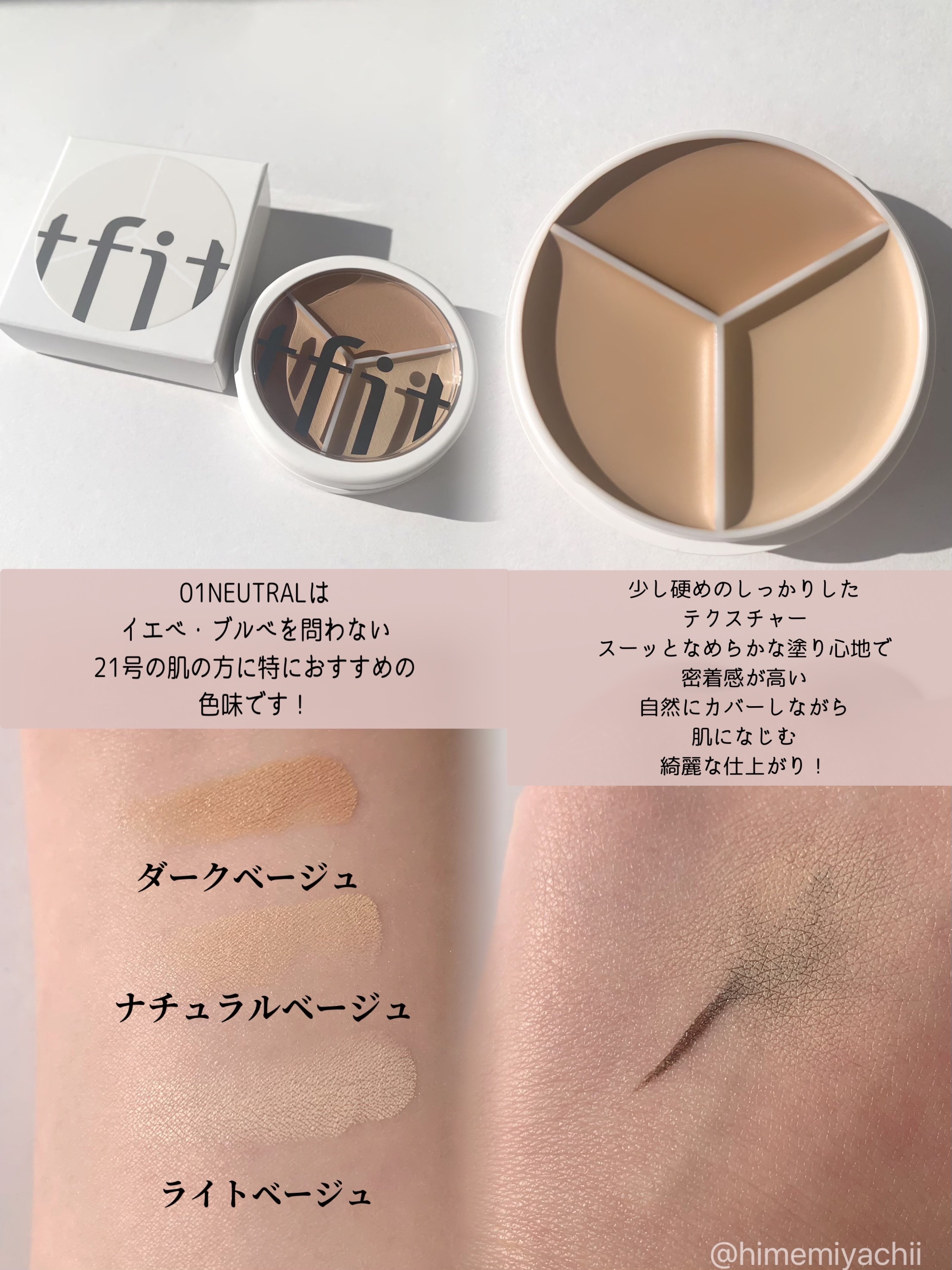 tfitカバーアッププロコンシーラー気になる部分をピンポイントでカバーしやすく、肌のうえでとろけて密着感のあるテクスチャー。厚塗り感が出にくく、ベースメイクにもなじみやすい印象でした🫶🏻1つで3色入ってるからクマ・赤み・ニキビ跡など気になる部...