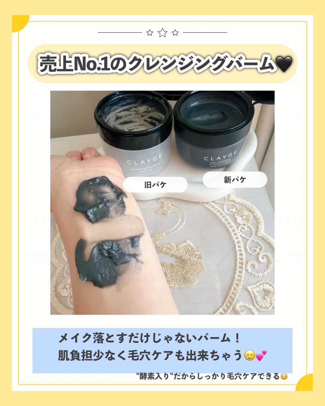 \大人気クレージュがフルリニューアル/良いクレンジングみぃ〜つけた生まれ変わって新登場CLAYGEポアスムージングクレンジングバームブラック1,760円(税込)硬めバームなんだけどバームを肌の上にのせると瞬時になめらかな濃密オイルに変化頑固な...