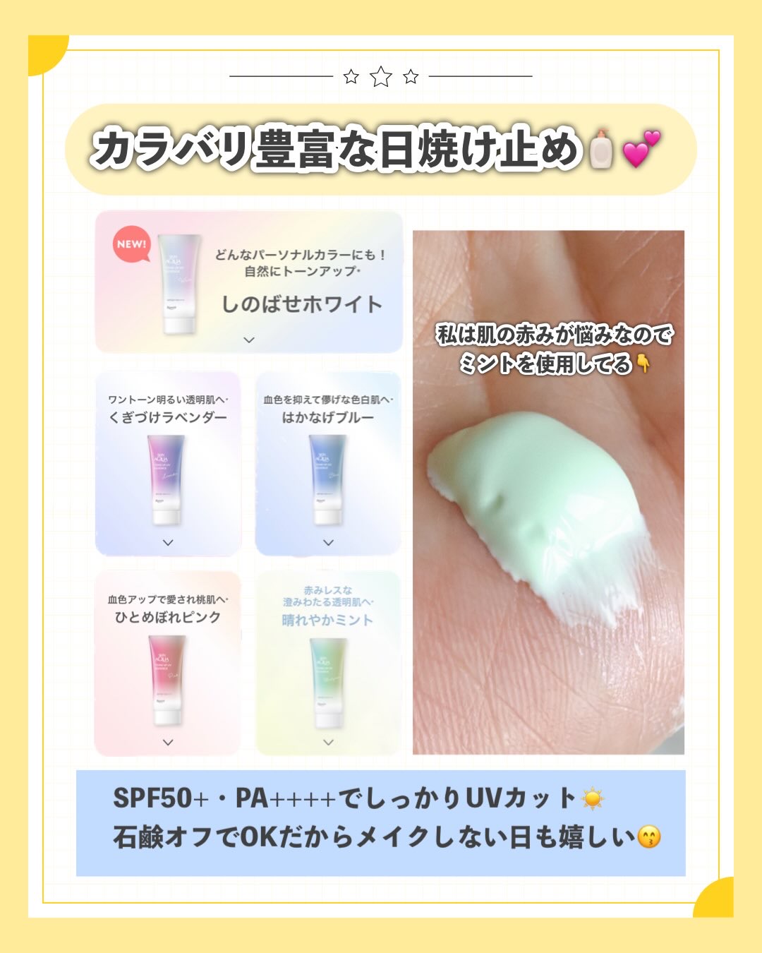 | 日焼け止め・UVケアランキング第52位 | 塗るとさらっとぴたっと肌に密着し日焼け止め効果あるのにパリパリせずしっとり🥺✨ | 詳細を見る | |