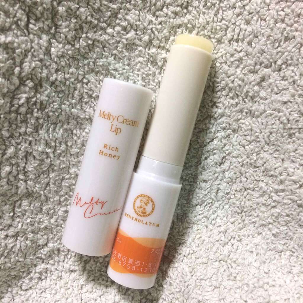 メンソレータムメルティクリームリップリッチハニー少し荒れた唇に使用しましたがスルスル溶けてツヤツヤにしてくれます!数時間経っても乾かずプルプルをキープしてくれました!✨✨リッチハニーの香りはTHEはちみつの香りです!🍯🧸...