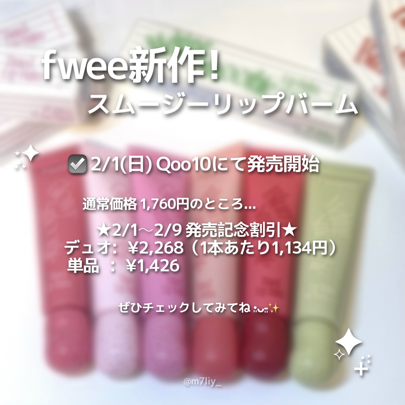 fwee新作(2/1~)スムージーリップバーム🪽💖#giftedみて😭このちゅるちゅる感😭🩷こんなに可愛いのにPDRNとペプチド入っててベタベタせず唇うるうるにしてくれるので毎日持ち歩き決定🎶リップバームなのにカラバリ豊富&2テクスチャーある...