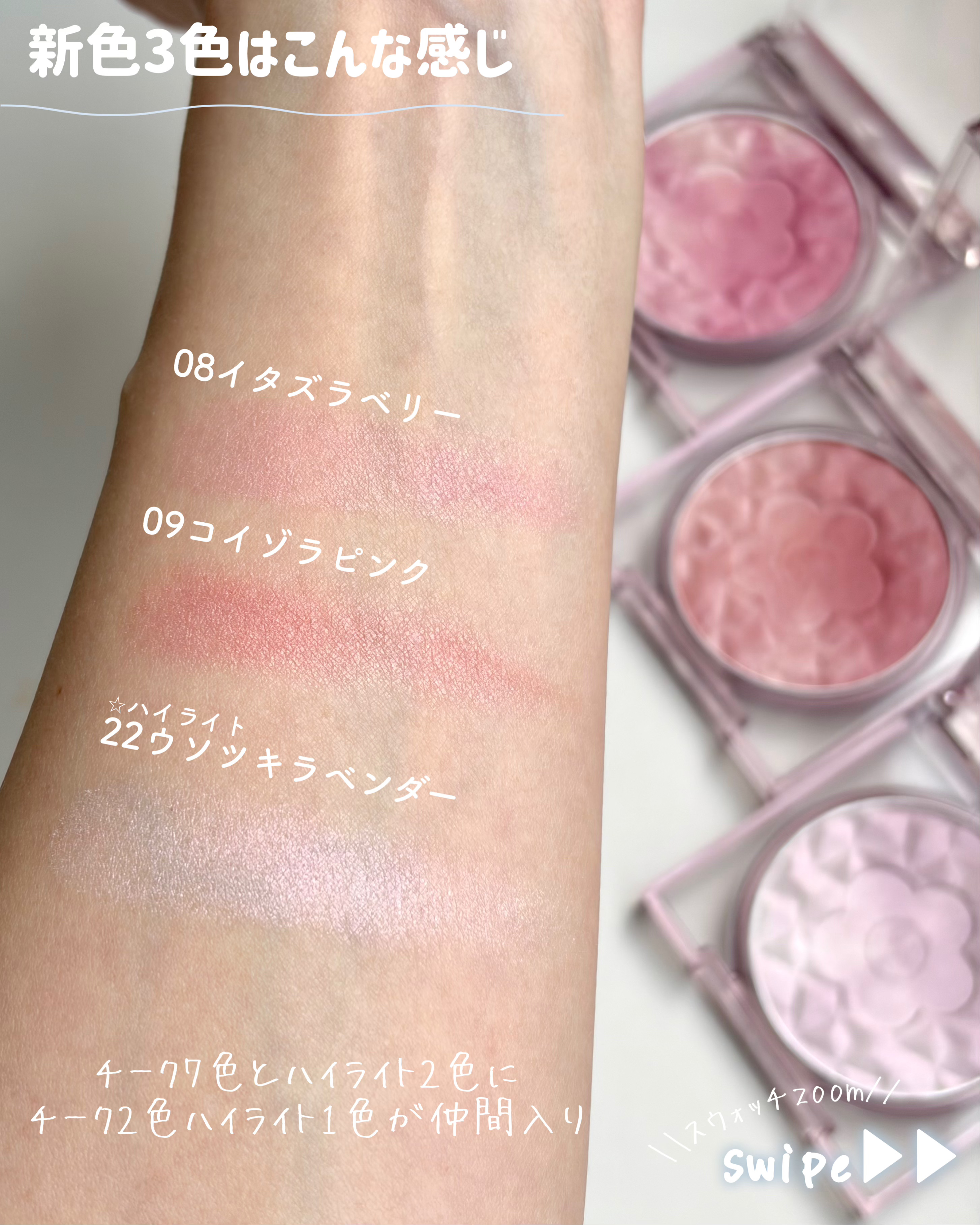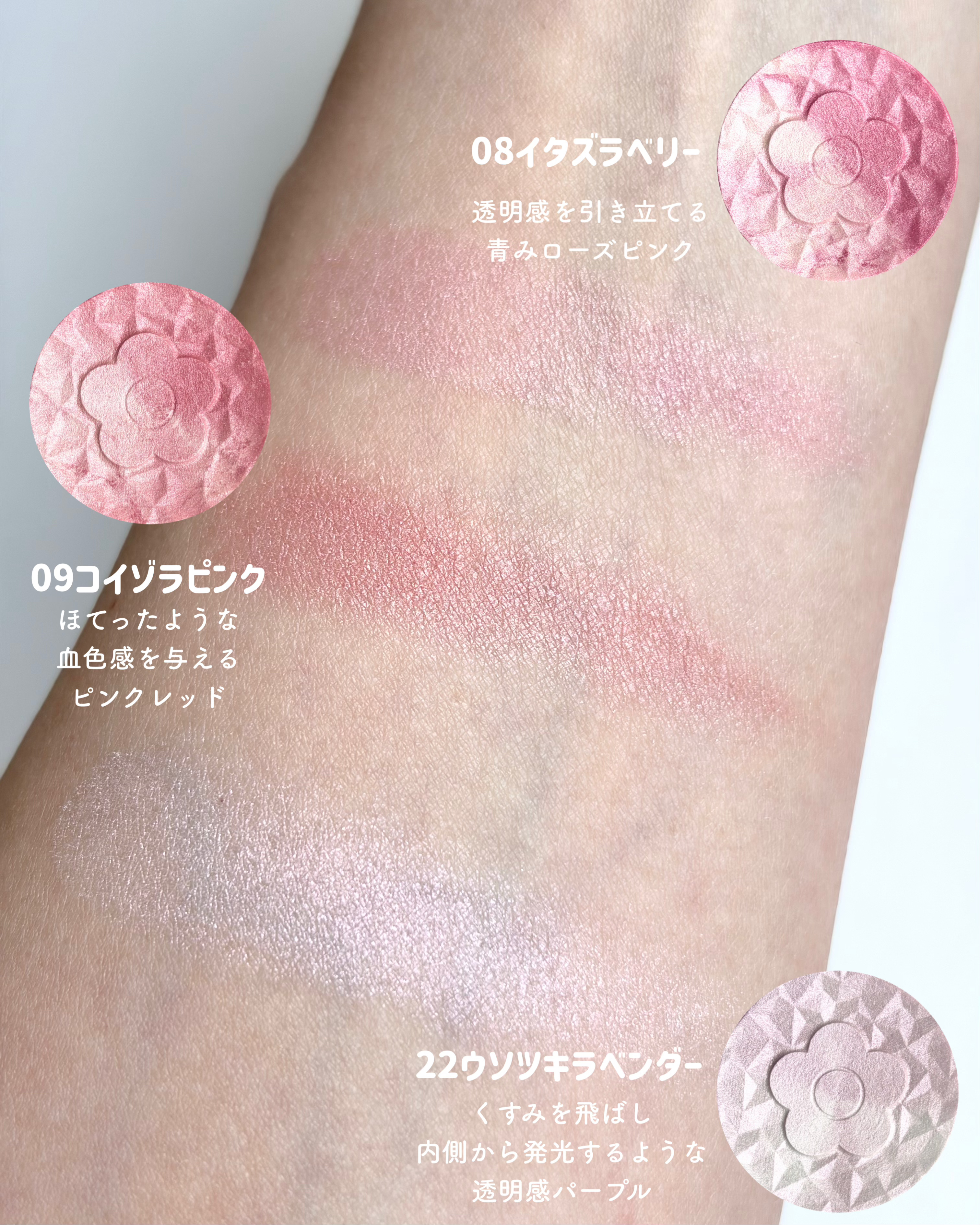デイジードールのパウダーブラッシュから春の新色が登場🌸🫧⚜️DAISYDOLLbyMARYQUANTデイジードールパウダーブラッシュブルーム08イタズラベリー/22ウソツキラベンダー08イタズラベリーは青みピンク~ピンクベージュのグラデで華や...