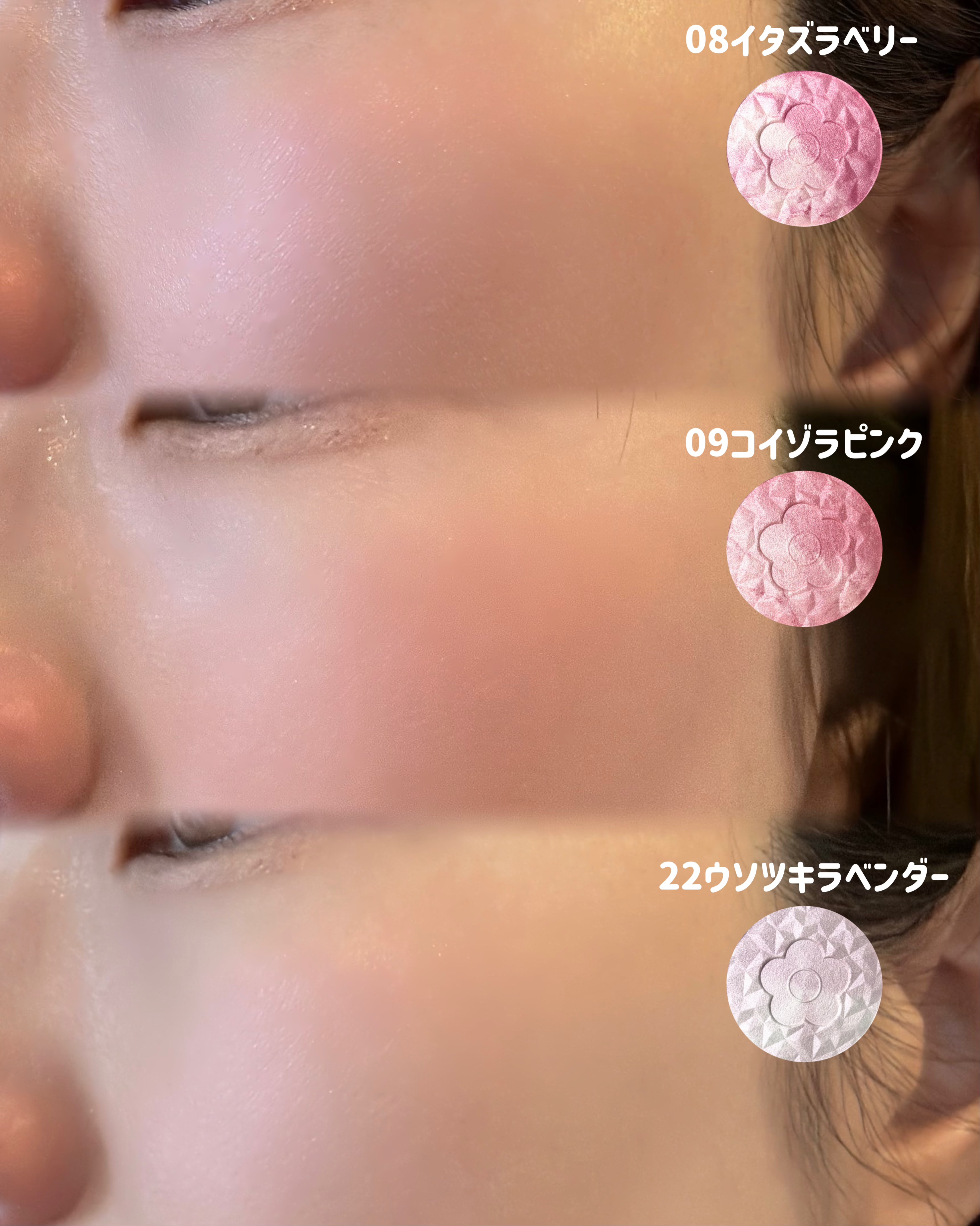 - ふんわり肌に溶け込むように馴染み、血色感を自在に操る高密着チーク&ハイライトに春の新色が登場! 今回の新色は、チーク2色とハイライト1色。 春らしい透明感ときらめくツヤ肌を演出するダイヤモンドコレクションとして、2つのカラーが混ざり合うダイヤモンドカットの見た目にも美しいデザイン。 いずれのカラーもこだわりの偏光パールを配合し、肌に自然になじみながら、ツヤと華やかさを演出。 高保湿タイプのトリプル美容オイル*1とうるおい持続パウダー*2配合で、お肌にうるおいを与えます。 *1:ダマスクバラ花油、カニナバラ果実油、アルガニアスピノサ核油(全て保湿成分) *2:シリカ(粉体基剤)、ヒアルロン酸Na(保湿成分)