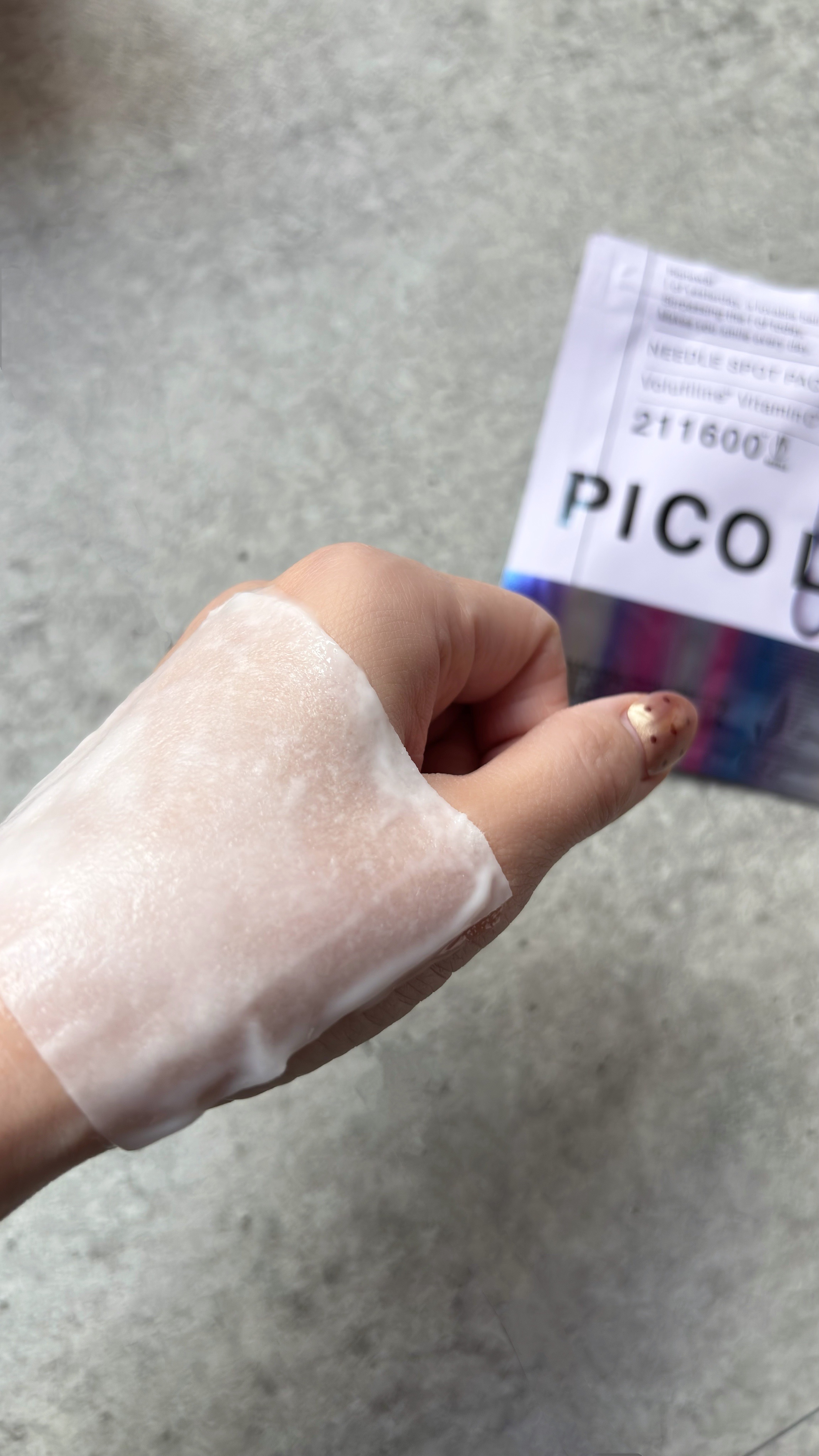 スピキュールが90万個入っているからお肌の変化も感じやすいそう! 水分・美白・ハリ弾力と 3種類あるから肌悩みに合わせて使えるのも良い💓 チクチク感は個人差があるから 使う前に腕の内側などの皮膚の薄い部分で試してみてね♩︎
