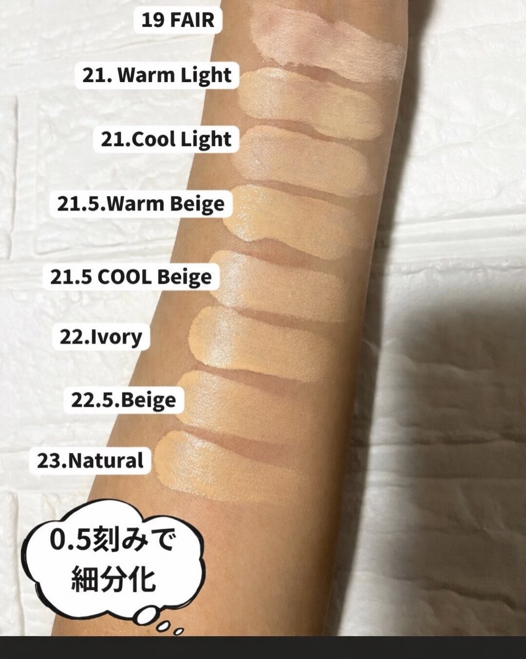 - < 21.5C クールベージュ> 酸化チタン、精製水、シクロペンタシロキサン、ブチレングリコール、フェニルトリメチコン、温泉水、グリセリン、イソドデカン、ポリグリセリル-4ジアイソステアレート/ ボリヒドロキシステアレート/セバケート、ジカプリル酸カーボネート、ブチルオクチルサリチレート、ナイアシンアミド、ラウリルPEG-9ポリジメチルシロキシエチルジメチコン、ジアイソステアリルマレート、トリメチルシロキシシリケート、酸化鉄(黄)、マイカ、塩化ナトリウム、プロパンジオール、アルミニウム水酸化物、ジメチコン、PEG-10ジメチコン、トリエトキシカプリリルシラン、硫酸パリウム、ジステアジモニウムヘクトライト、ソルビタンイソステアレート、ポリヒドロキシステアリン酸、ステアリン酸、カプリリルメチコン、酸化鉄(赤)、カプリリルグリコール、カプリル酸/カプリン酸トリグリセリド、グリセリルカプリレート、ポリソルベート80、ジナトリウムステアロイルグルタミン酸、エチルヘキシルグリセリン、水素添加レシチン、トリナトリウムエチレンジアミンジイソシネート、酸化鉄(黒)、イソステアリン酸、アデノシン、レシチン、ペンチレングリコール、ポリグリセリル-3ポリリシノレート、コラーゲンアミノ酸、1,2-ヘキサンジオール、ヘマトコッカスプルビアリスエキス、加水分解ヒアルロン酸、ヒアルロン酸、ヒアルロン酸Na、トコフェロール、グアイアズレンスルホネートNa、ジメチルシラノールヒアルロン酸、加水分解ヒアルロン酸Na、ヒドロキシプロピルトリモニウムヒアルロン酸、ヒアルロン酸Naクロスポリマー、ジメチルシラノールビアルロン酸Na、アセチル化ヒアルロン酸Na <19 フェア> 精製水、酸化チタン、シクロペンタシロキサン、ブチレングリコール、フェニルトリメチコン、温泉水、グリセリン、イソドデカン、ポリグリセリル-4ジアイソステアレート/ ボリヒドロキシステアレート/セバケート、ジカプリル酸カーポネート、ブチルオクチルサリチレート、ナイアシンアミド、ラウリルPEG-9ポリジメチルシロキシエチルジメチコン、ジアイソステアリルマレート、トリメチルシロキシシリケート、マイカ、塩化ナトリウム、プロパンジオール、アルミニウム水酸化物、酸化鉄(黄)、PEG-10ジメチコン、硫酸バリウム、ジステアジモニウムヘクトライト、ソルビタンイソステアレート、トリエトキシカプリリルシラン、ジメチコン、ポリヒドロキシステアリン酸、ステアリン酸、カプリリルグリコール、カプリル酸/カプリン酸トリグリセリド、カプリリルメチコン、グリセリルカプリレート、酸化鉄(赤)、ポリソルペート80、ジナトリウムステアロイルグルタミン酸、エチルヘキシルグリセリン、水素添加レシチン、トリナトリウムエチレンジアミンジイソシネート、イソステアリン酸、アデノシン、酸化鉄(黒)、レシチン、ペンチレングリコール、ポリグリセリル-3ポリリシノレート、コラーゲンアミノ酸、1,2-ヘキサンジオール、ヘマトコカスプルビアリスエキス、加水分解ヒアルロン酸、ヒアルロン酸、ヒアルロン酸ナトリウム、トコフェロール、グアイアズレンスルホネートナトリウム、ジメチルシラノールヒアルロン酸、加水分解ナトリウムヒアルロン酸、ヒドロキシプロピルトリモニウムヒアルロン酸、ヒアルロン酸ナトリウムクロスポリマー、ジメチルシラノールヒアルロン酸ナトリウム、アセチル化ヒアルロン酸ナトリウム <21.5W ウォームベージュ> 酸化チタン、精製水、シクロペンタシロキサン、ブチレングリコール、フェニルトリメチコン、温泉水、グリセリン、イソドデカン、ポリグリセリル-4ジアイソステアレート/ ポリヒドロキシステアレート/セバケート、ジカプリル酸カーボネート、ブチルオクチルサリチレート、ナイアシンアミド、ラウリルPEG-9ポリジメチルシロキシエチルジメチコン、酸化鉄(黄)、ジアイソステアリルマレート、トリメチルシロキシシリケート、マイカ、ジメチコン、塩化ナトリウム、プロパンジオール、アルミニウム水酸化物、PEG-10ジメチコン、トリエトキシカプリリルシラン、硫酸パリウム、ジステアジモニウムヘクトライト、ソルビタンイソステアレート、ポリヒドロキシステアリン酸、ステアリン酸、カプリリルメチコン、カプリリルグリコール、酸化鉄(赤)、カプリル酸/カプリン酸トリグリセリド、グリセリルカプリレート、ポリソルベート80、ジナトリウムステアロイルグルタミン酸、エチルヘキシルグリセリン、水素添加レシチン、酸化鉄(黒)、トリナトリウムエチレンジアミンジ酢酸、イソステアリン酸、アデノシン、レシチン、ペンチレングリコール、ポリグリセリル-3ポリリシノレート、コラーゲンアミノ酸、1,2-ヘキサンジオール、ヘマトコッカスプルビアリスエキス、加水分解ヒアルロン酸、ヒアルロン酸、ヒアルロン酸Na、トコフェロール、グアイアズレンスルホネートNa、ジメチルシラノールヒアルロン酸、加水分解ヒアルロ