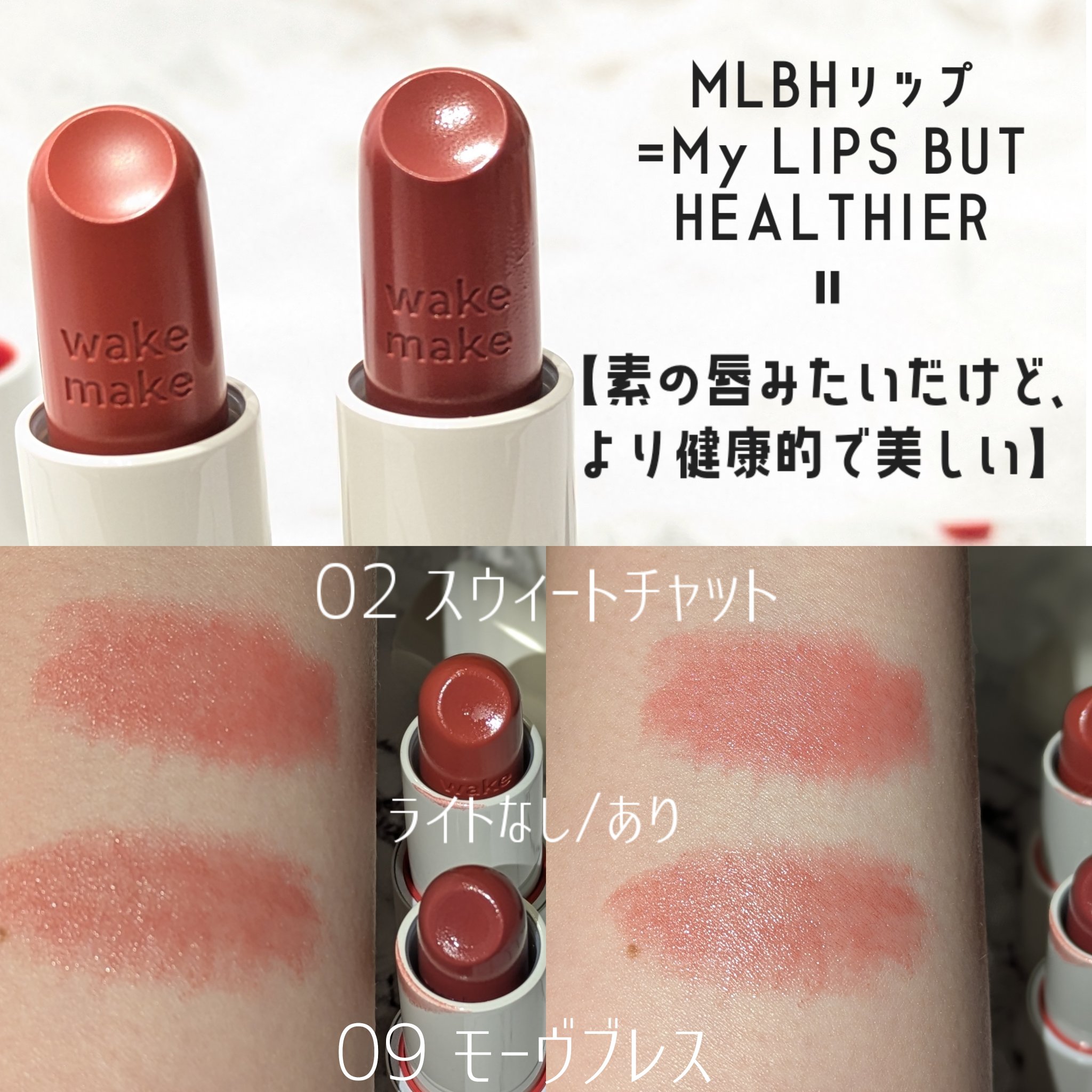 wakemakeHEALTHYGLOWBALMSTICK02スウィートチャット09モーヴブレスwakemakeは4月末からリブランディングしてロゴが小文字に!パケも可愛い🤍Amazon・全国バラショ(一部店舗除く)で販売中!唇がキレイに見える...