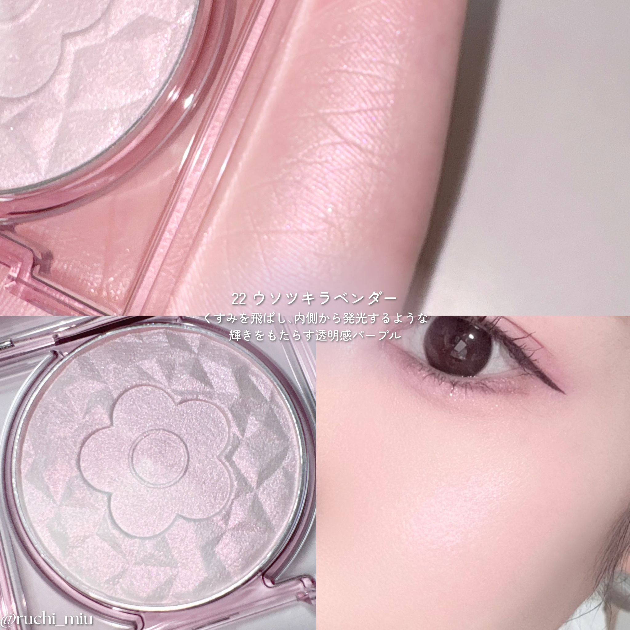 - ふんわり肌に溶け込むように馴染み、血色感を自在に操る高密着チーク&ハイライトに春の新色が登場! 今回の新色は、チーク2色とハイライト1色。 春らしい透明感ときらめくツヤ肌を演出するダイヤモンドコレクションとして、2つのカラーが混ざり合うダイヤモンドカットの見た目にも美しいデザイン。 いずれのカラーもこだわりの偏光パールを配合し、肌に自然になじみながら、ツヤと華やかさを演出。 高保湿タイプのトリプル美容オイル*1とうるおい持続パウダー*2配合で、お肌にうるおいを与えます。 *1:ダマスクバラ花油、カニナバラ果実油、アルガニアスピノサ核油(全て保湿成分) *2:シリカ(粉体基剤)、ヒアルロン酸Na(保湿成分)