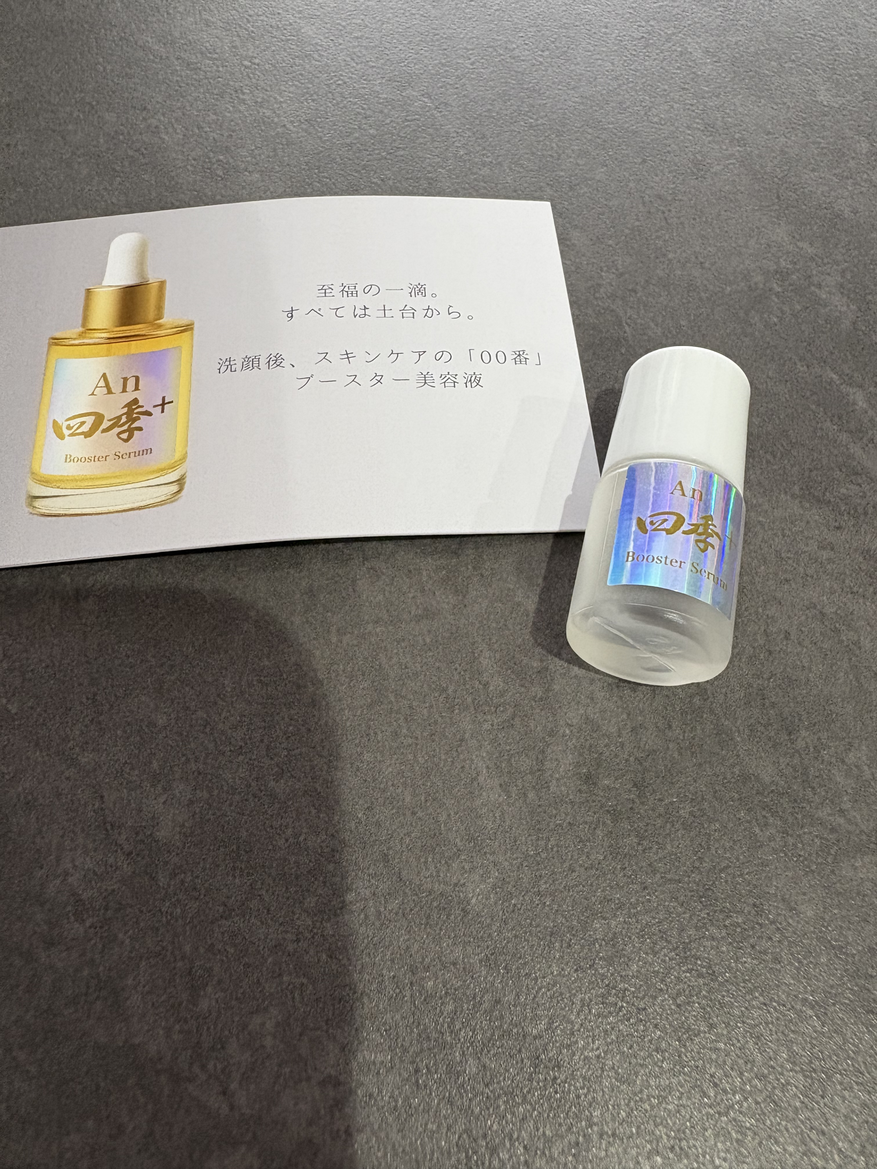 - 「毎日のスキンケアに欠かせない、こだわりの1本。」 洗顔後、スキンケアの「00番」美容液。 An 四季 +(アン シキ プラス)誕生! “四季 × 発酵 × 素肌の土台美容” この3つの思想から生まれた、濃密ブースター美容液。 肌は日々揺らぐ。乾燥、気温、紫外線、生活リズム。 しかし—— 土台*1が整った素肌は、乾燥にも揺らぎにくい。 An 四季+は、 “素肌が本来もつ力” をサポートするために設計された1本です。 ■特徴 日本古来の圧搾法が生む「AF発酵コメエキス」 山形県鶴岡市。 お米が一年をかけて育つように、素肌も時間とともに自分らしい美しさを。 日本古来の圧搾法で抽出されたこの“コメエキス”は、うるおい・透明感*2・なめらかさを支える発酵由来保湿成分。 ・発酵を早める添加物を一切使わない ・強い圧力をかけず、米そのものの成分を壊さない ・温度・湿度・発酵の進み方を、職人の目で見極める ・四季のリズムに寄り添い、“発酵”を「育てる」 ■天然オイル × 美容成分を“こだわりのブレンド” オリーブ油・ゴマ油・アーモンド油・コメヌカオイルこれら植物オイルに、ビタミンC(持続型VC誘導体)/パルミチン酸レチノール(ビタミンA)/トコフェノール(ビタミンE)を贅沢に配合。(全て保湿成分) 素肌が“受け取る力”をサポートし、その後のスキンケアの浸透*1を後押しします。 ■とろみがほどける、独自のテクスチャー とろりと濃密、なのにべたつかない。 素肌の上でスッと伸び、サッと柔らかさが生まれる心地良さ。 朝晩の習慣にすっと馴染む、なめらかな触れ心地。 ■こんな方におすすめ ・季節や外的環境により乾いたゆらぎ肌が気になる方 ・丁寧なお手入れで素肌の“根本*1”を整えたい方 ・世界観・品質・哲学のある こだわりのスキンケア を探している方 *1角質層まで *2保湿によりキメが整った肌印象のこと