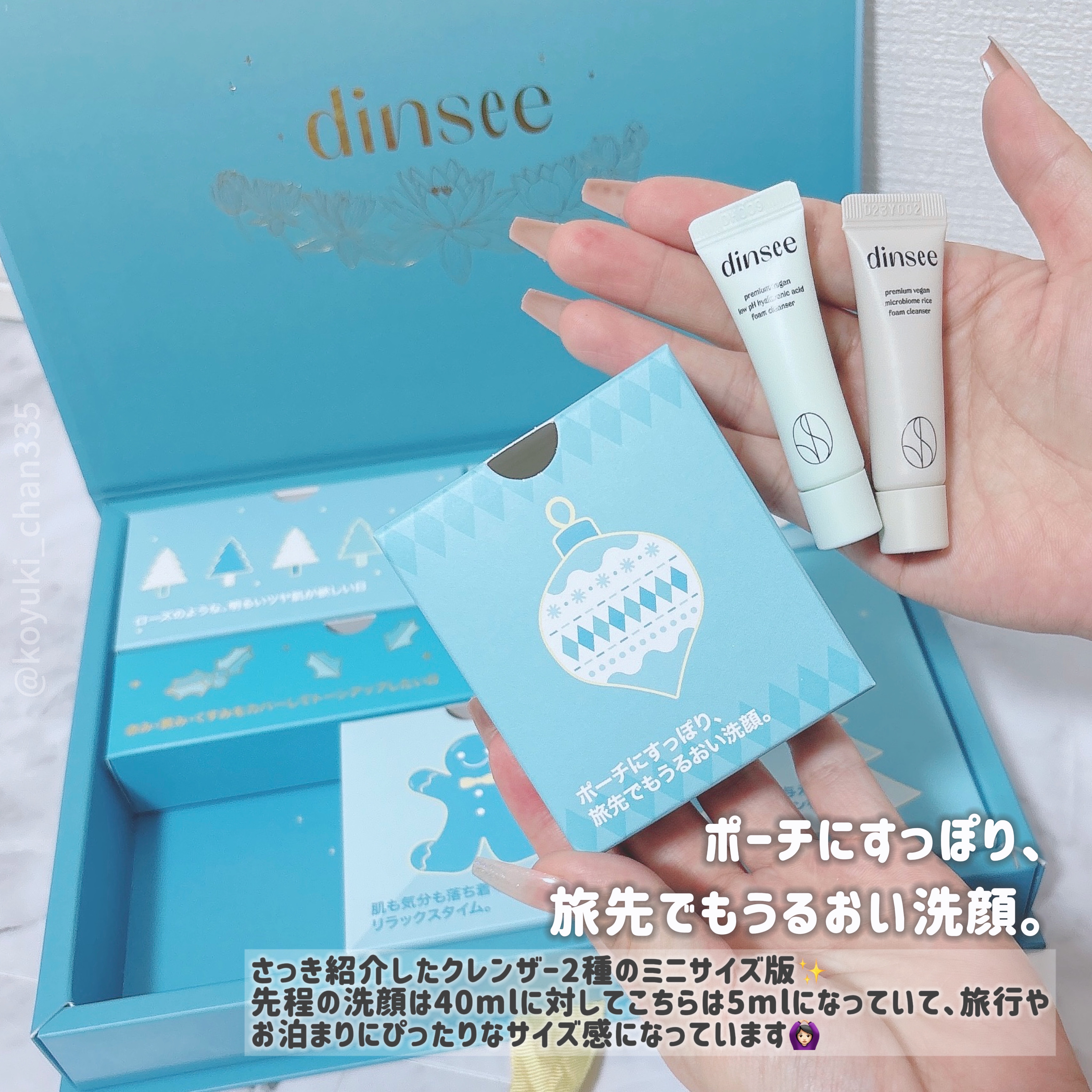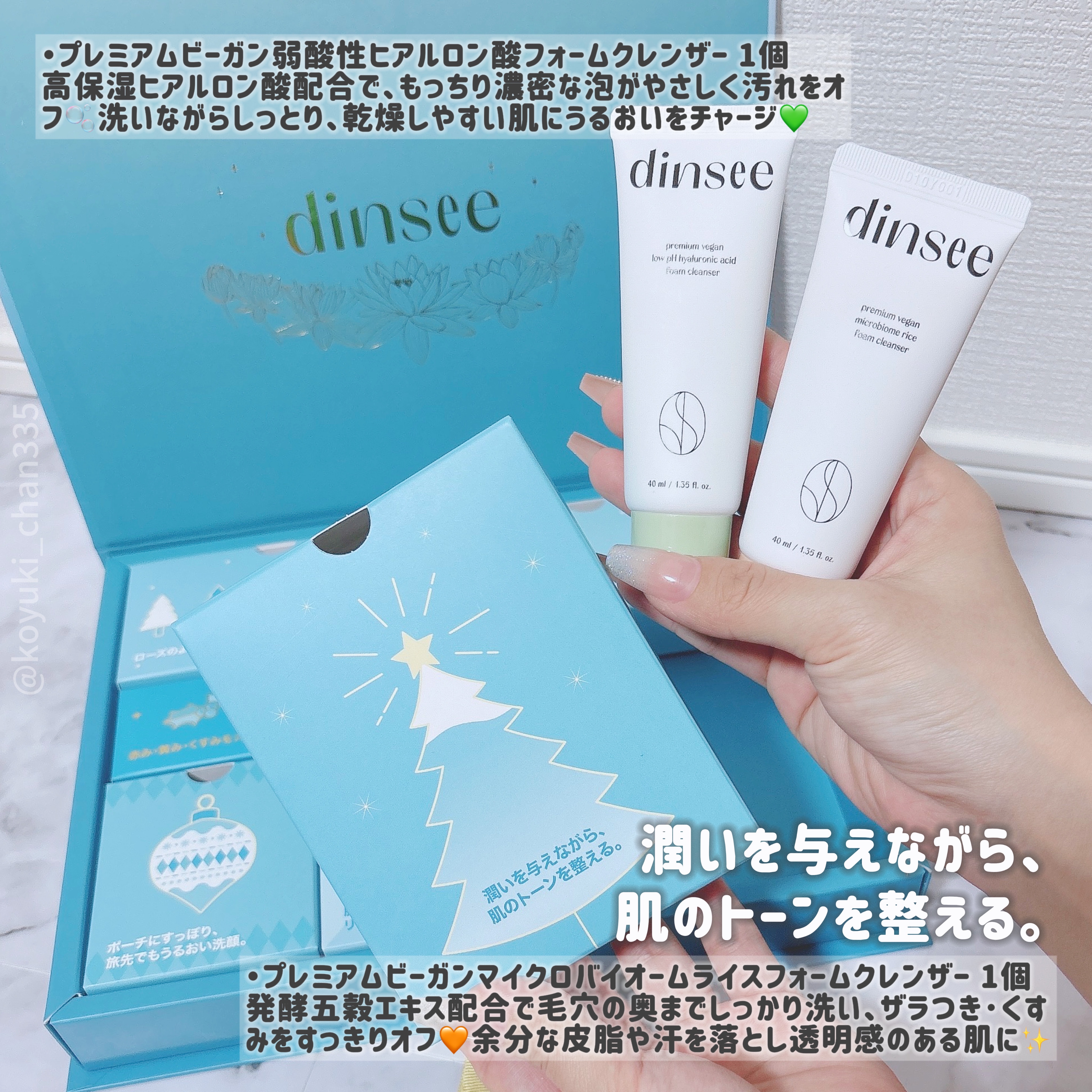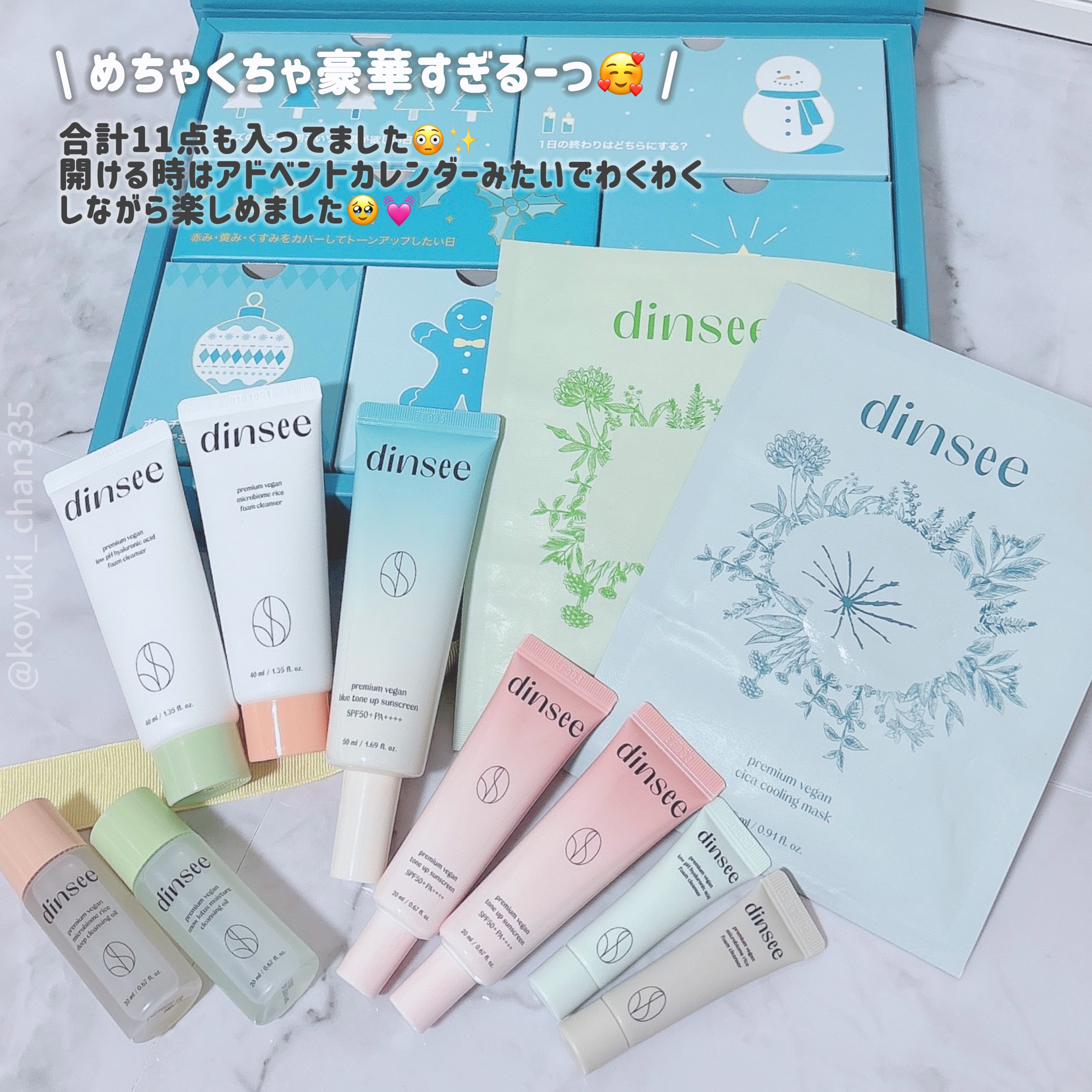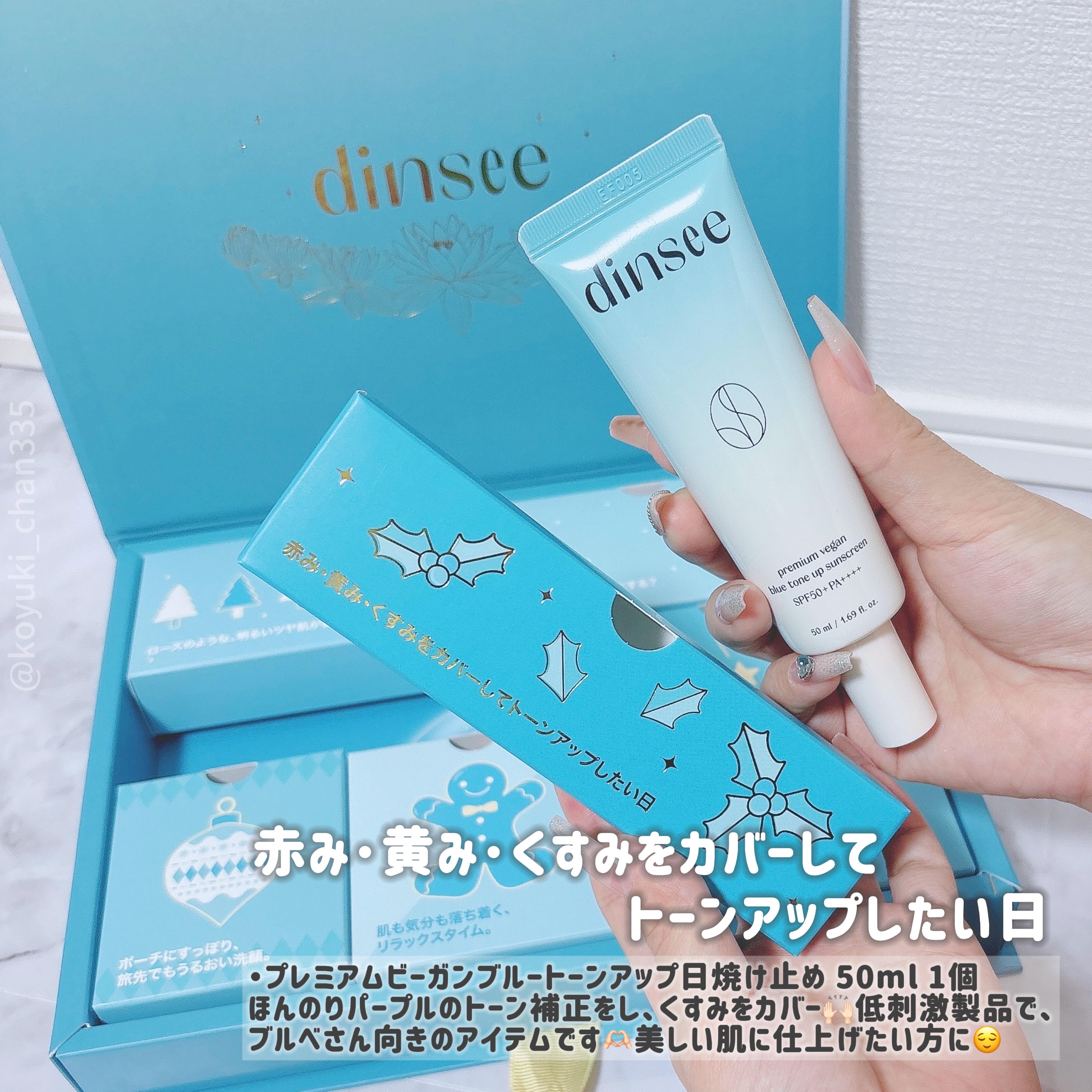 ⭐︎dinsee⭐︎ディンシーのギフトBOX🎁が届きました♡BOX🎁の内容は‥プレミアムビーガンブルートーンアップ下地50mlプレミアムビーガントーンアップ下地20ml×2プレミアムビーガンヒアルロン酸洗顔/40mlプレミアムビーガンライス洗...