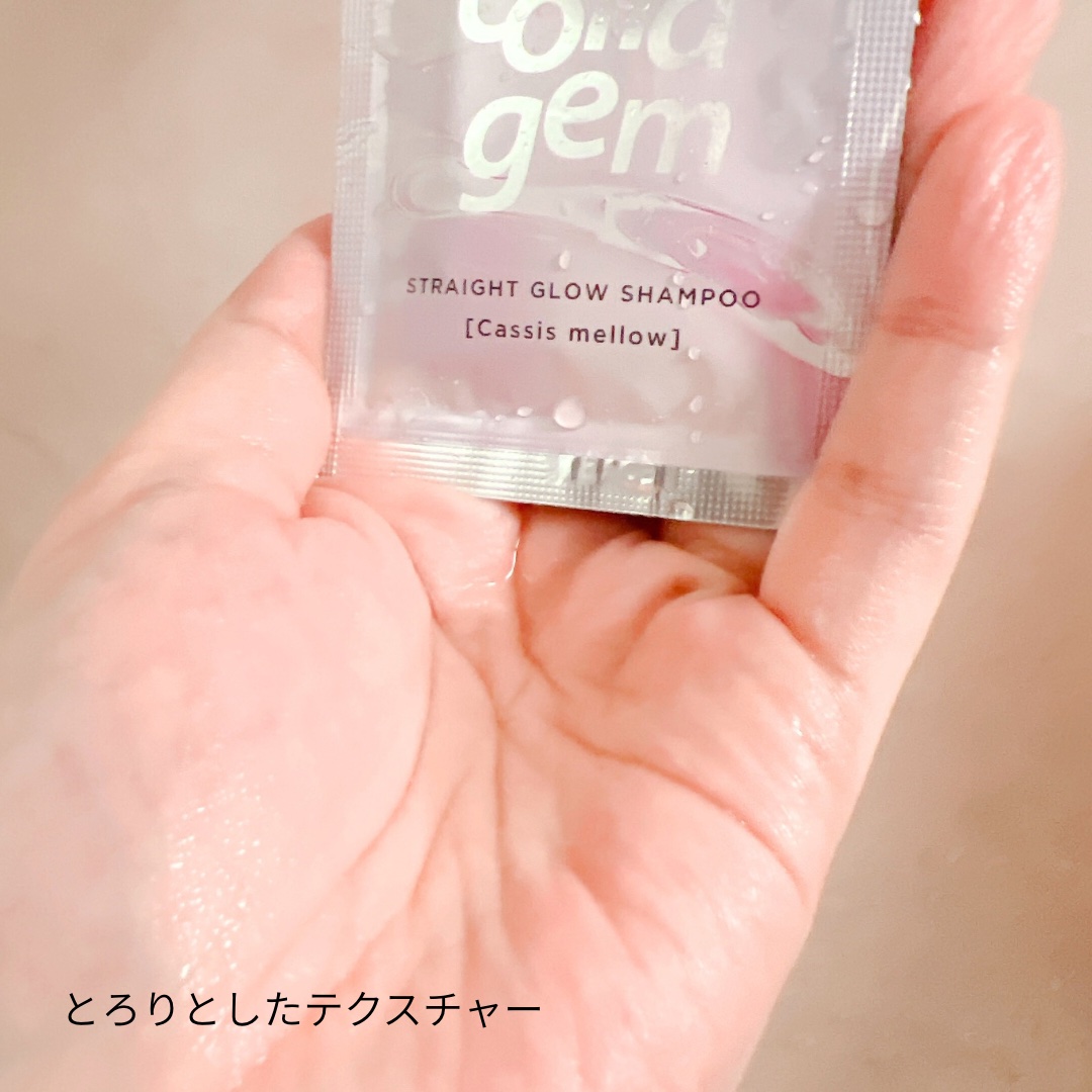 - 洗うだけで、濃密コラーゲンヘアパック※1,5,6,7 「コラジェム ストレートグロウシャンプー&トリートメント」 コラーゲン由来の洗浄成分※1配合(※シャンプーのみ) うねり・広がる髪に【高保湿&補整※2】 おさまる、ぷるすとん髪へ ◎ハイドラバランシング処方 【うねりの原因、髪内部の水分の偏り※3をケア】 くせ・うねりのある髪を扱いやすく ➀保湿性アミノ酸誘導体※4 長時間の保湿効果と 水分の偏り※3をケア ➁うねりプロテクトオイル※5 髪を保湿・保護し、 つやとハリコシ向上 ◎【コラーゲン美容補修成分※6,7】 ➀デュアルリペアコラーゲン※6 大きさが違う2つのコラーゲンが 内部と外部から潤い浸透、洗うたび補修 ➁ヒートケアコラーゲンMIX※7,8 熱を味方にしてアイロンなどの熱ダメージから キューティクルを補修・保護 「上品で大人な甘さの カシスメロウの香り で優雅なバスタイムに」 ※1:ココイル加水分解コラーゲンK(洗浄成分) ※2:うるおいを与えること ※3:乾燥ダメージにより髪の水分バランスが整っていないこと ※4:ジヒドロキシプロピルアルギニンHCl(保湿成分) ※5:トマト種子油(エモリエント成分) ※6:サクシノイルアテロコラーゲン、加水分解コラーゲン(すべて毛髪補修成分) ※7:加水分解コラーゲンPGプロピルメチルシランジオール(毛髪補修成分) ※8:グルコシルヘスペリジン(保湿成分)