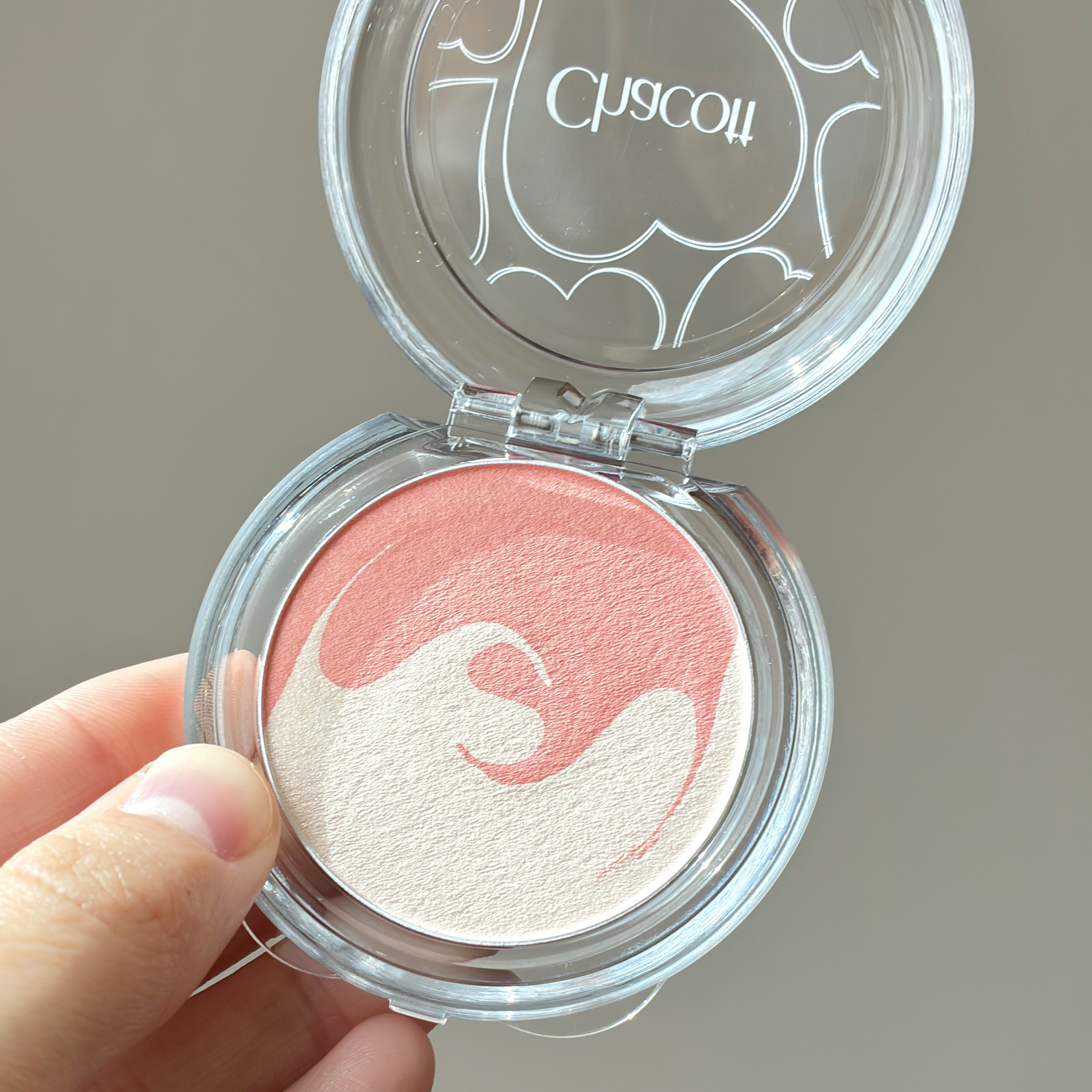 - 数量限定発売 まるで“マーブルチョコレート”のような見た目で、自分へのご褒美にもぴったり ・ルビーチョコを思わせるコーラルピンク系のチーク ・ジャンデューヤチョコレートのヘーゼルナッツをイメージしたハイライト テクニックいらずで、血色感と立体感をひと塗りで叶えるチーク&ハイライトです。 体温の高まりとともにあらわれる“多幸感のあるほっぺ”を演出 恋をしているとき、幸福感に包まれているとき、舞台上で輝いているとき...。 体温の高まりとともにあらわれる“自分史上最強にかわいい表情” に着目。 1~2回重ねるだけで、チークのほどよい血色感※1とハイライトの自然なツヤが多幸感のある頬を引き立てます。 ■肌ベースを問わないコーラルピンク(チークカラー) ブルべ・イエベに関わらずなじむように調和した色設計により、ほどよい血色感を演出。 また、赤色透過酸化チタンが透明感のある血色感※1をサポートします。 ■ステージメイク発祥の高発色とカバー力※1(チークカラー) 高密着なカラーピグメントにより鮮やかな発色を実現。 また、ソフトフォーカス効果のあるパウダーが、気になる肌の色ムラや毛穴の凹凸をカバーし、なめらかな肌を演出します。 ※1 ■自然なツヤと透明感を与えるゴールドパール(ハイライトカラー) サイズと輝きの異なるゴールドパールを配合し、複雑な光の反射を演出。 自然なツヤと透明感を与え、表情を立体的に際立たせます。 ■なめらかな頬を目指す※2 美容成分配合※3 ・ビタミンC誘導体(テトラヘキシルデカン酸アスコルビル) ・加水分解コラーゲン ・ヒアルロン酸Na ・オーガニック原料 (アルガニアスピノサ核油、シア脂、オリーブ果実油、ヒマワリ種子油、トウキンセンカエキス、ローズマリー葉エキス、セイヨウサクラソウ花エキス、セイヨウノコギリソウ花/葉/茎エキス、セイヨウハッカ葉エキス、ゼニアオイ花/葉/茎エキス、ハゴロモグサ花/葉/茎エキス、ベロニカオフィシナリス花/葉/茎エキス、メリッサ葉エキス) ※1 メイクアップ効果による ※2 うるおいを与えることによる ※3 各保湿成分