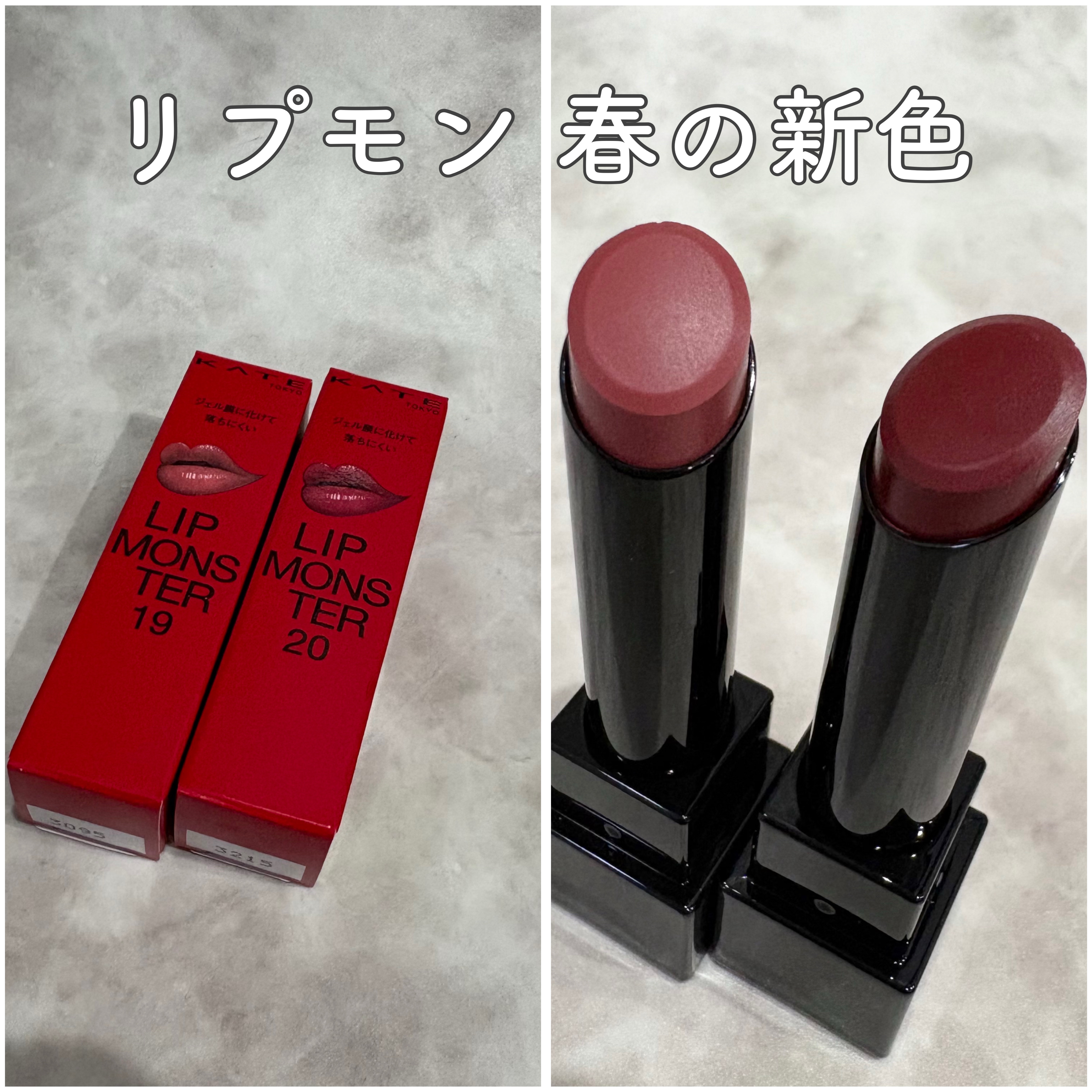 \🆕リプモン新色速報💄✨/みんな大好きリプモンから、春らしいカラーが登場🩷◼︎KATEリップモンスター18とろけ落ちる蜜桃19口染めライチの甘い罠20いたずらベリーの道標¥1,540税込新色は、甘い果実のようなニュアンスピンク系カラー🍓・18...