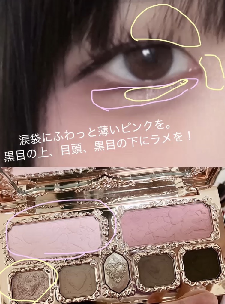 なんとラメとグリッターのみのパレットがでていました… 少し前から出ていたようです! 全然可愛い!!!! 1,3,5の番号を書いているものはグリッターで結構ギラギラ?ピンクパープルベースかな? どれもしっかり密着するしグリッターカラーは擦ってもホロが取れないです笑