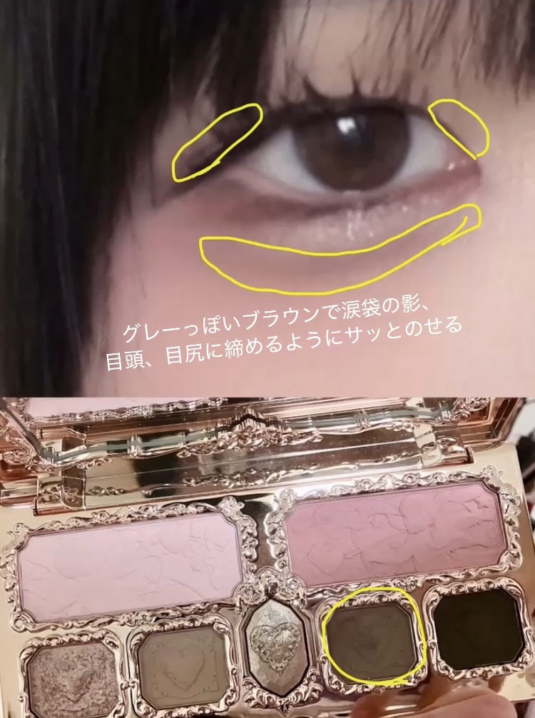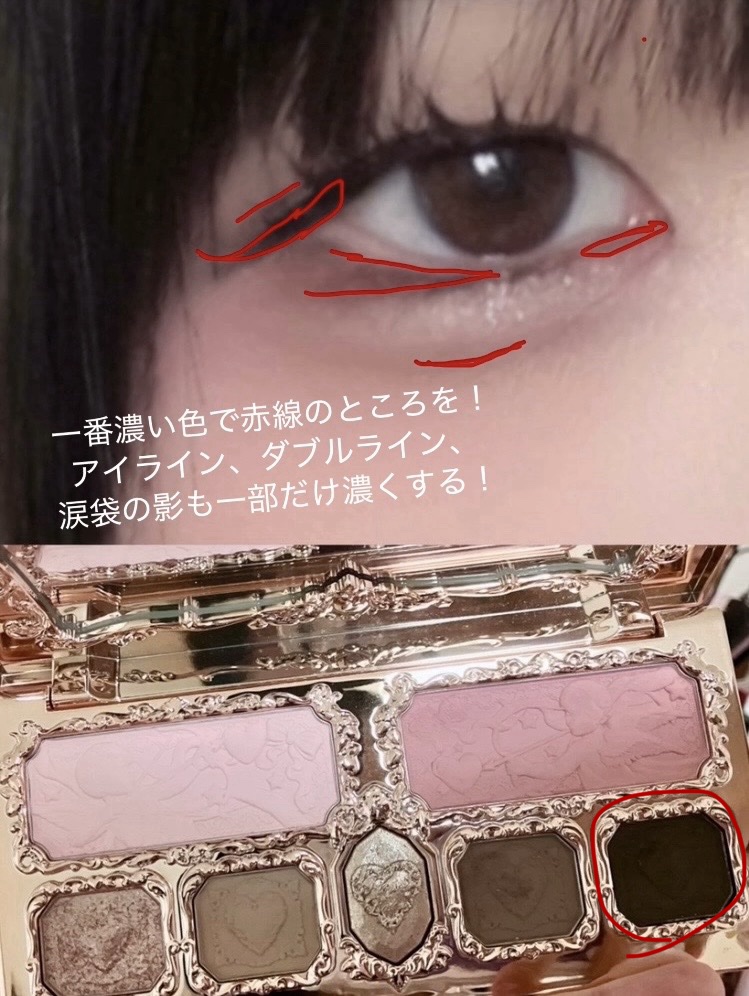 私は黒マスカラが好きなのでマスカラは黒にしています。 まつ毛はしっかりあげて程よい束感を作ることをオススメします。 ちなみにアイラインは少しタレ目気味が好きなので2の色で影をつけるように引いてます。 使うものも少ないので学生さんや時間が無い!って時にもおすすめです。