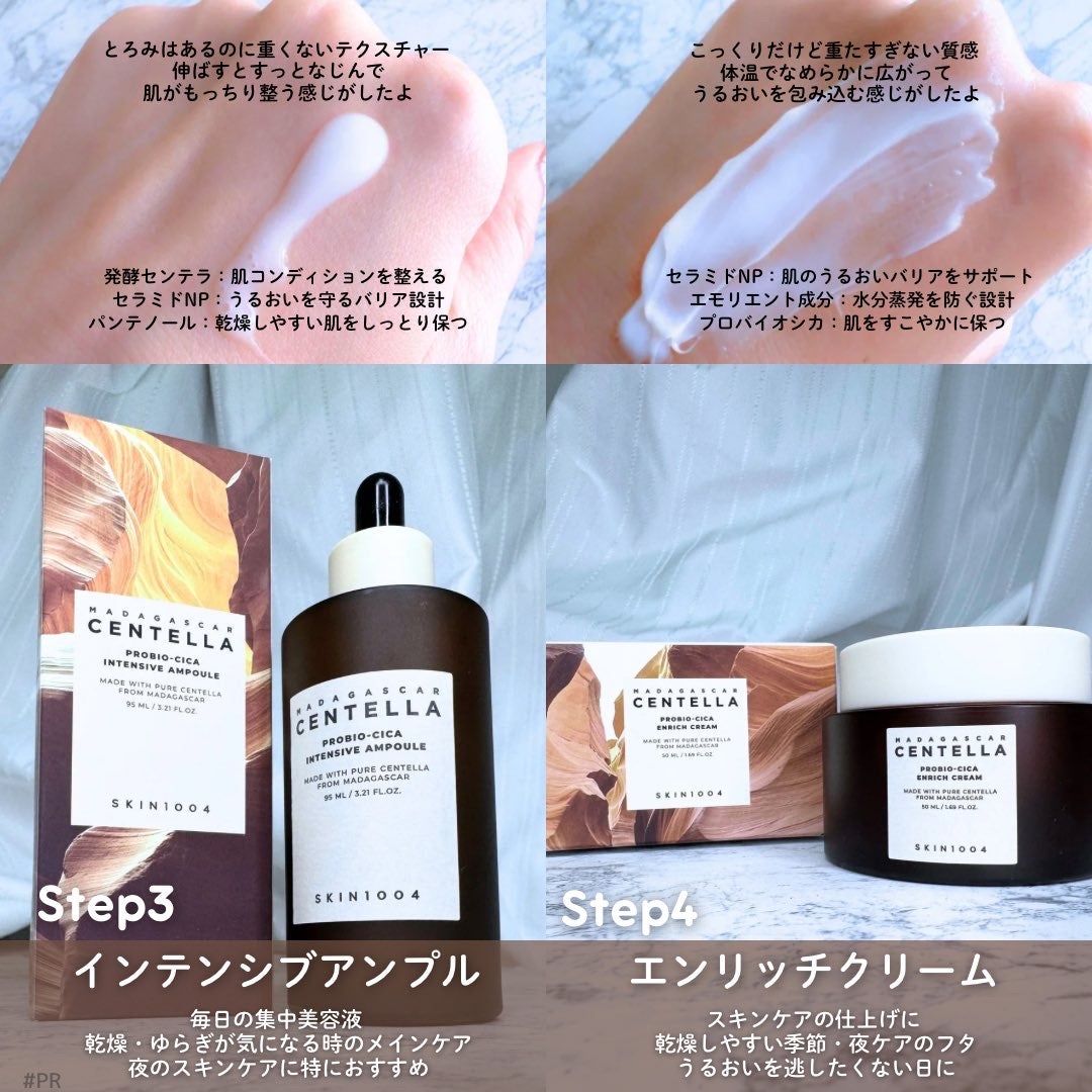 🌻✨#PRSKIN1004公式アンバサダー投稿です📣乾燥や肌のゆらぎ対策にオススメ!!プロバイオシカラインのご紹介🤎マダガスカル産のツボクサを植物由来乳酸菌で発酵させたセンテラとTECAを配合しているラインです✨うるおいを角質層まで与え、肌を...