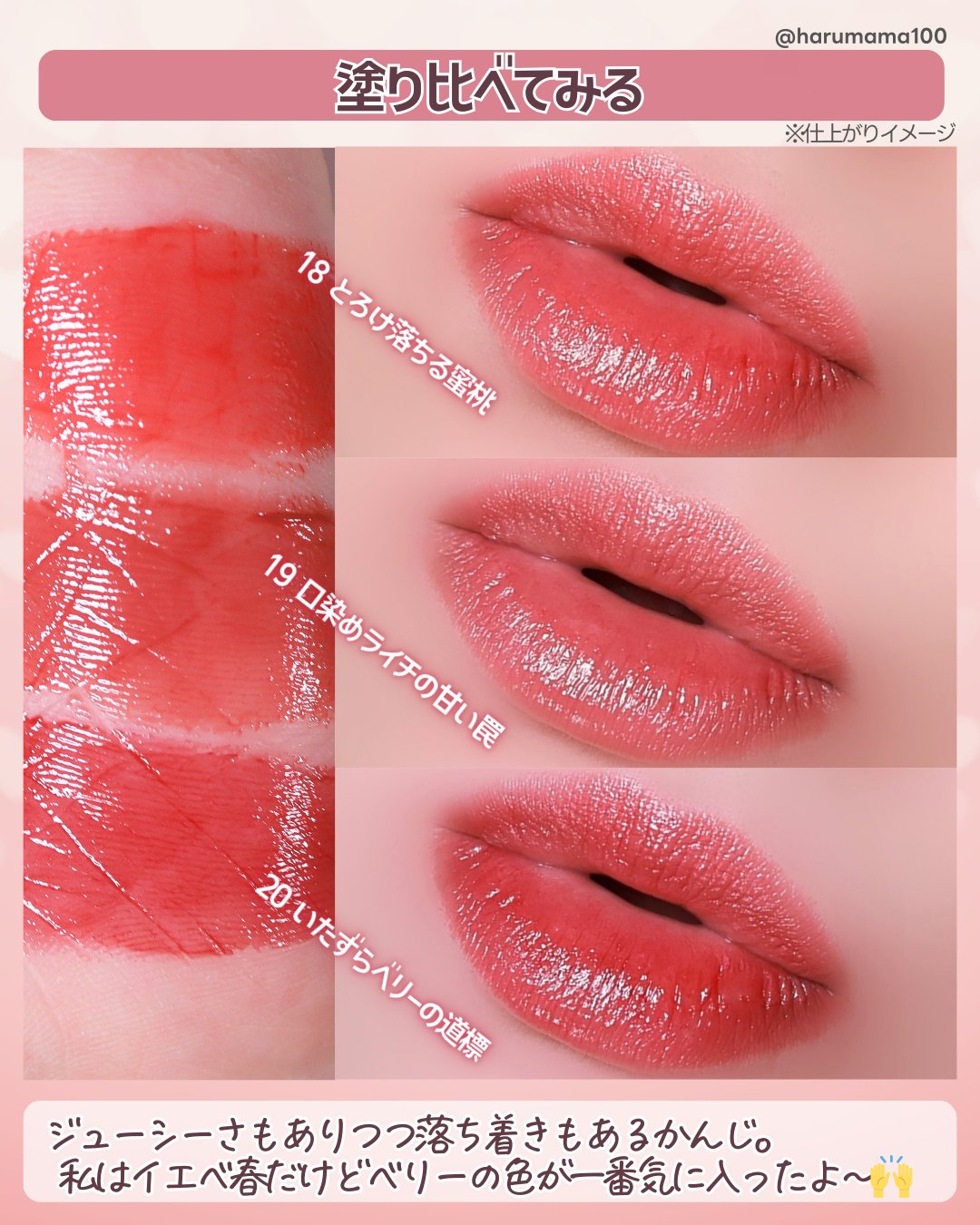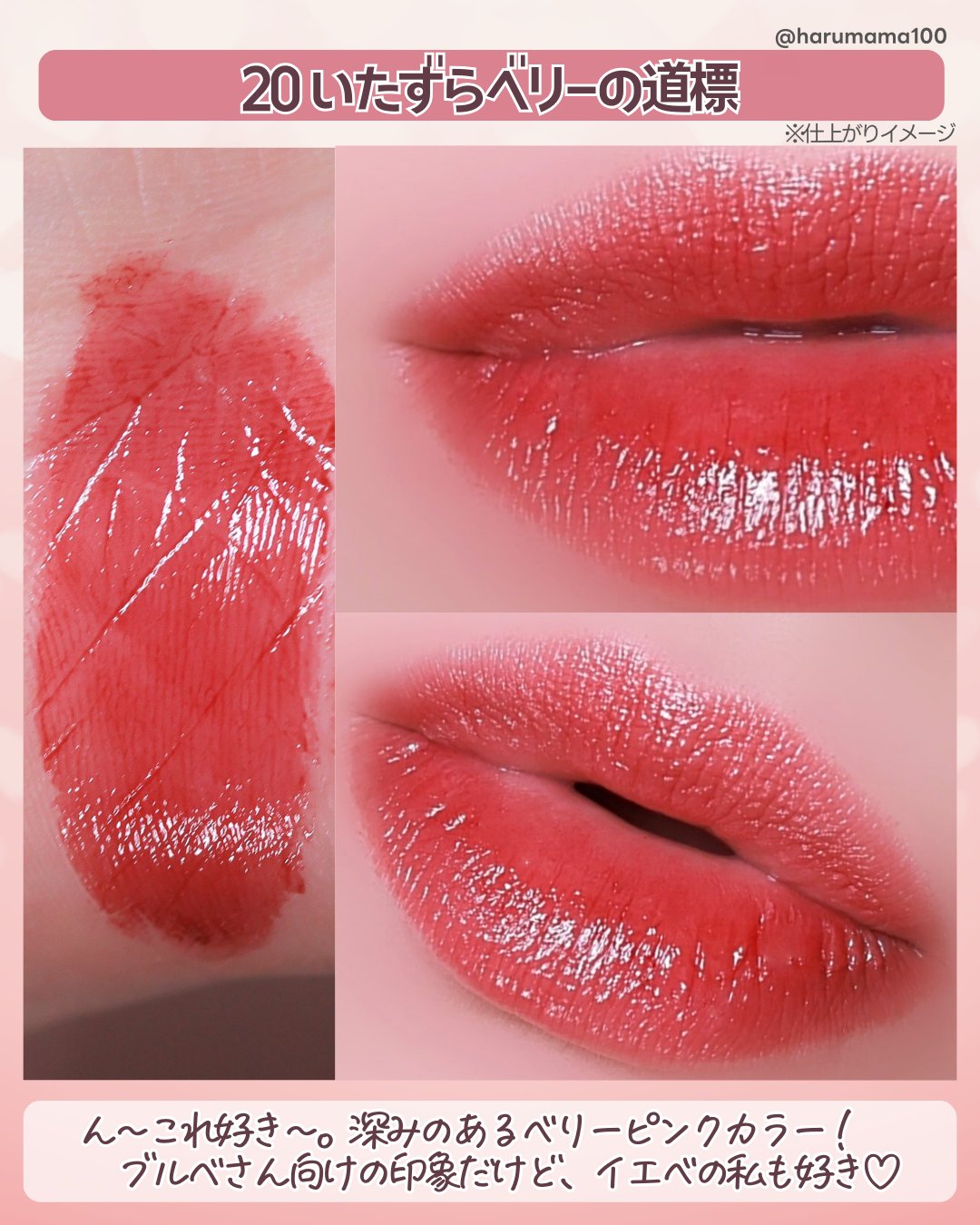 いたずらベリーたしかにブルベ寄りかと思いきやイエベでもいけそうですね、、、!3色とも可愛いです😭😭❣️❣️