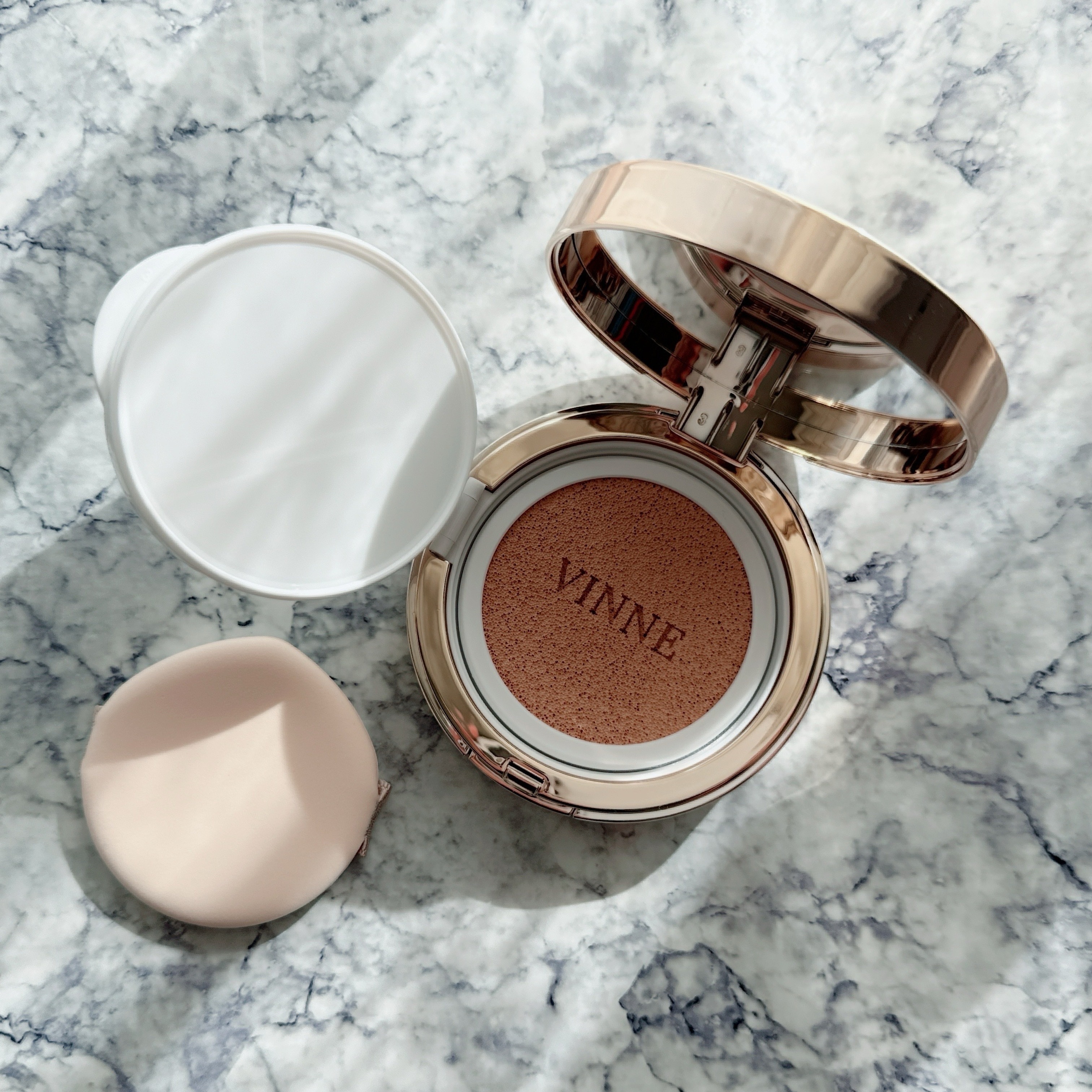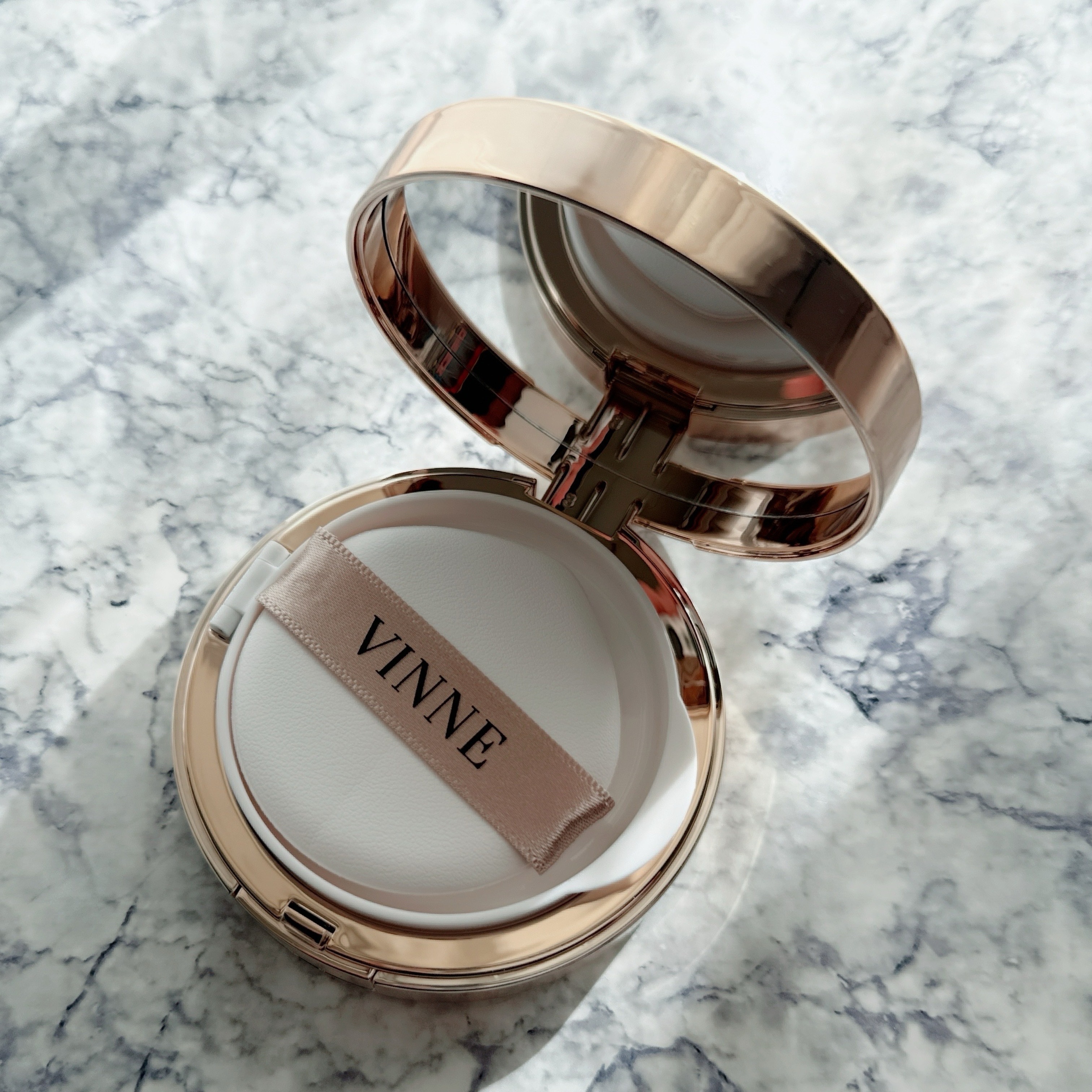 VINNE(ビンヌ)さまよりご提供いただきました!ダマスクローズウォーターを中心とした高濃度エッセンス配合!スキンケア後のようなみずみずしいツヤ肌が期待できそうなクッションファンデです。ダマスクローズや4種のスキンケア成分という、まさに「スキ...