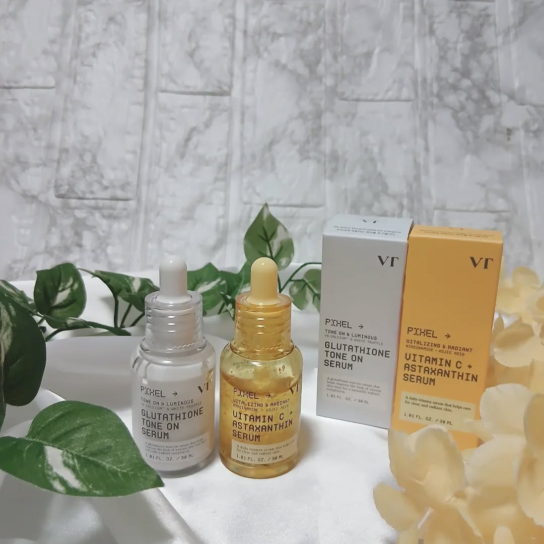 ・VTから新しく注目すべき新作シリーズ美容液2種類登場したの知ってる!?👀今回は、その2種類をご紹介します🪄︎︎✨❁⃘*.゚ビタミンCアスタキサンチンセラム🍋ビタミンCとアスタキサンチンのWツヤ美白成分で、透明感長持ち!実際に使用してみると...