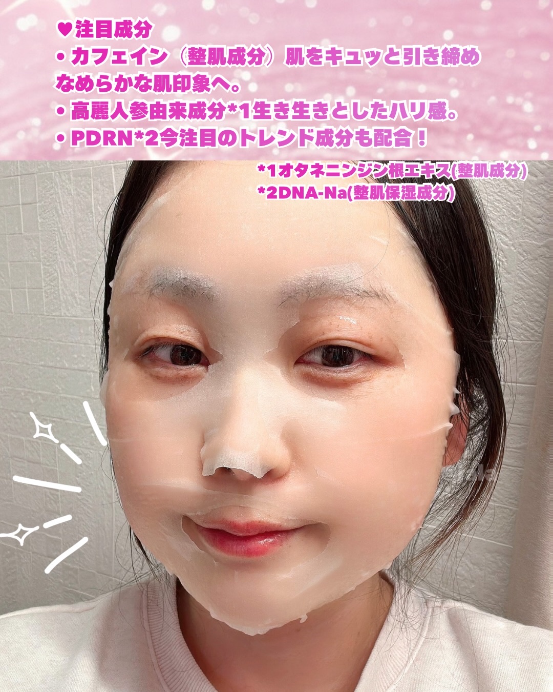 - カフェイン*×高麗人参*¹由来のPDRN *²配合 くすみ*³も目元の乾燥悩みも気にしない、肌が引き締まったすっきり印象のフェイスラインへ 肌に優しい使い心地。こだわりの低刺激処方*⁴ *整肌成分 *¹オタネニンジン根エキス(整肌成分) *²DNA-Na(整肌保湿成分) *³乾燥によりくすんで見える印象のこと *⁴すべての人に肌トラブルがおきないわけではありません